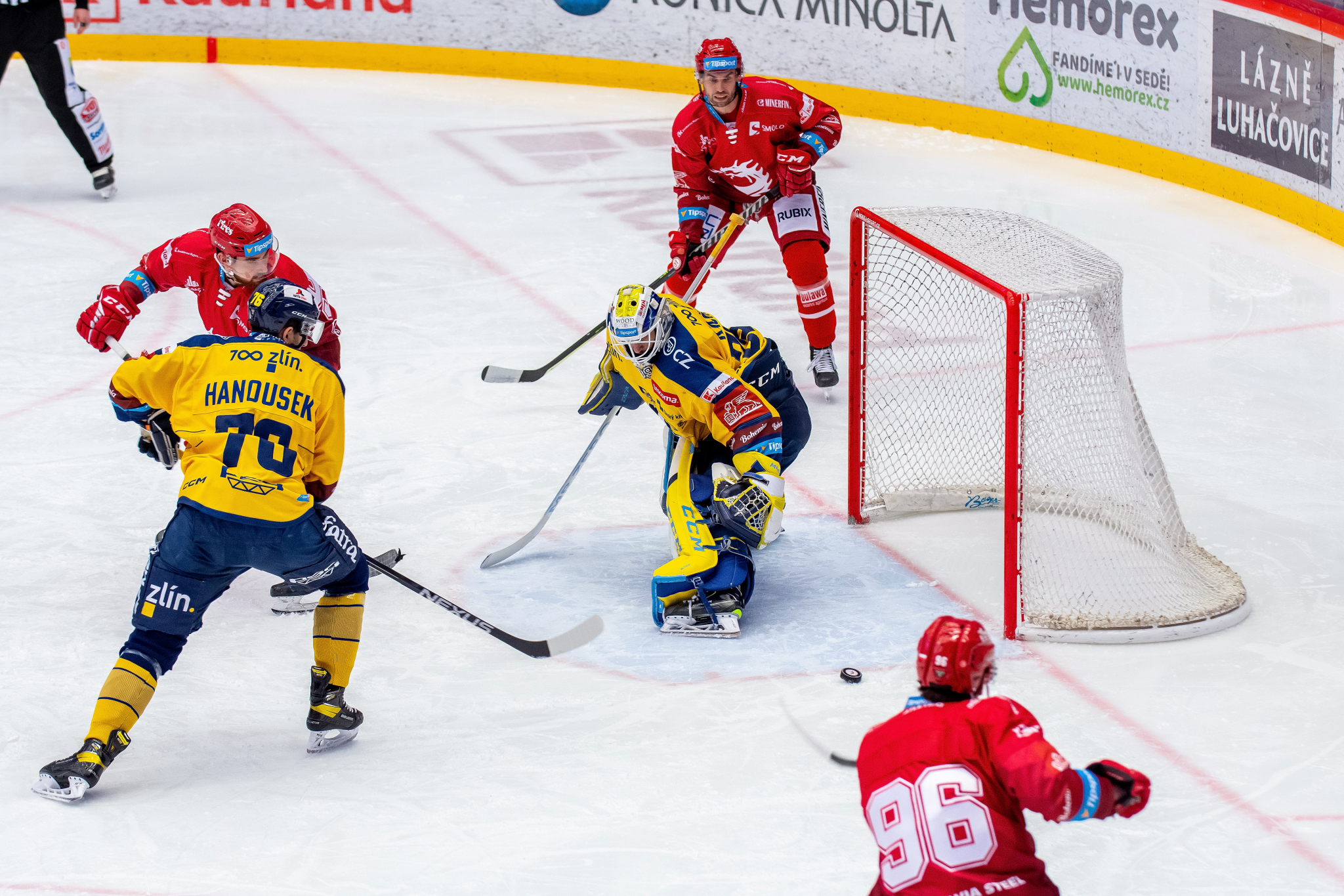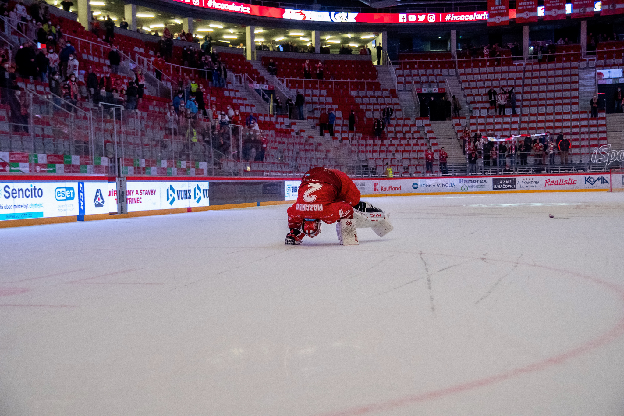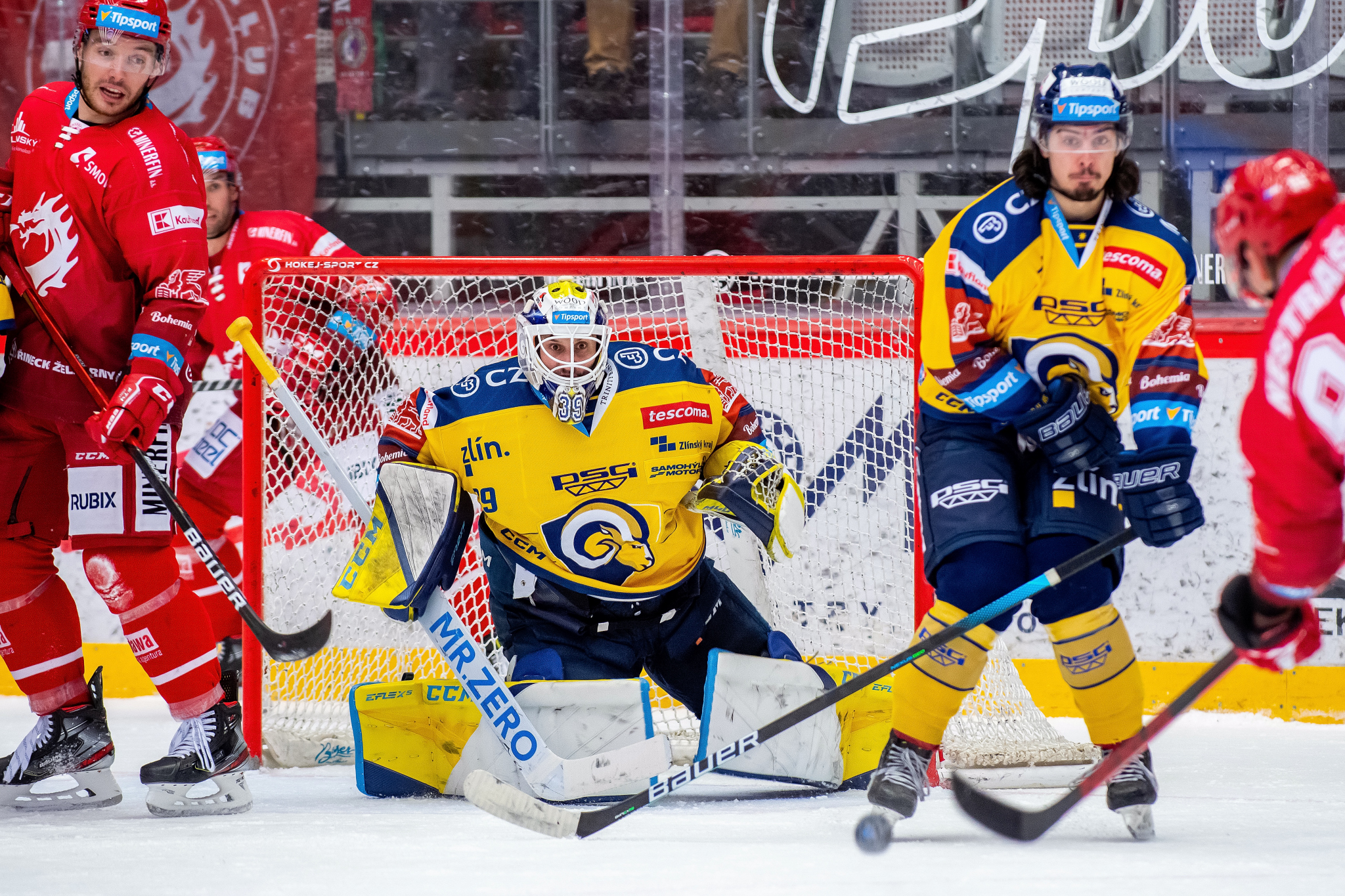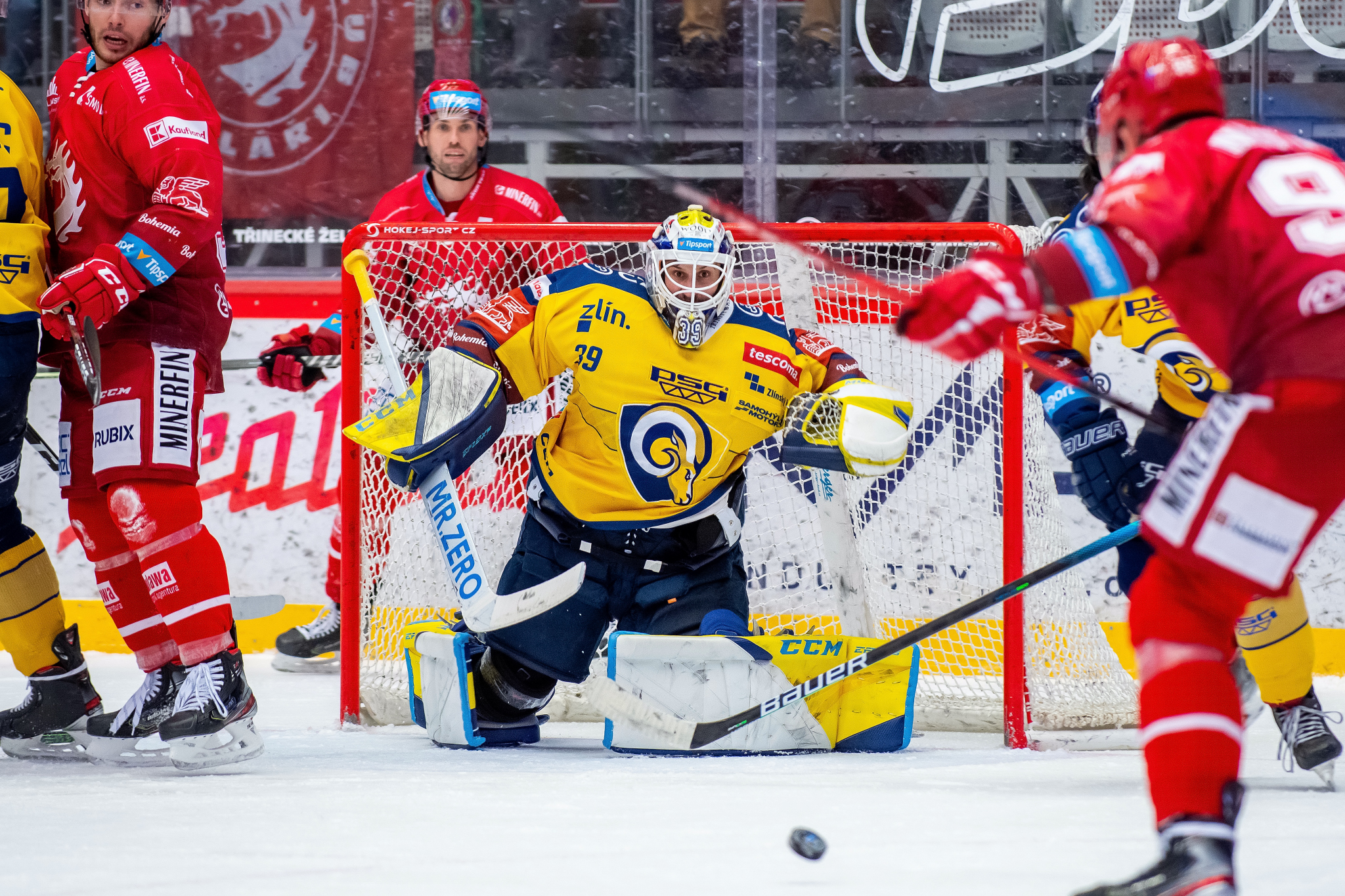 Marek Mazanec u této střely zasahovat nemusel. Letěla těsně nad