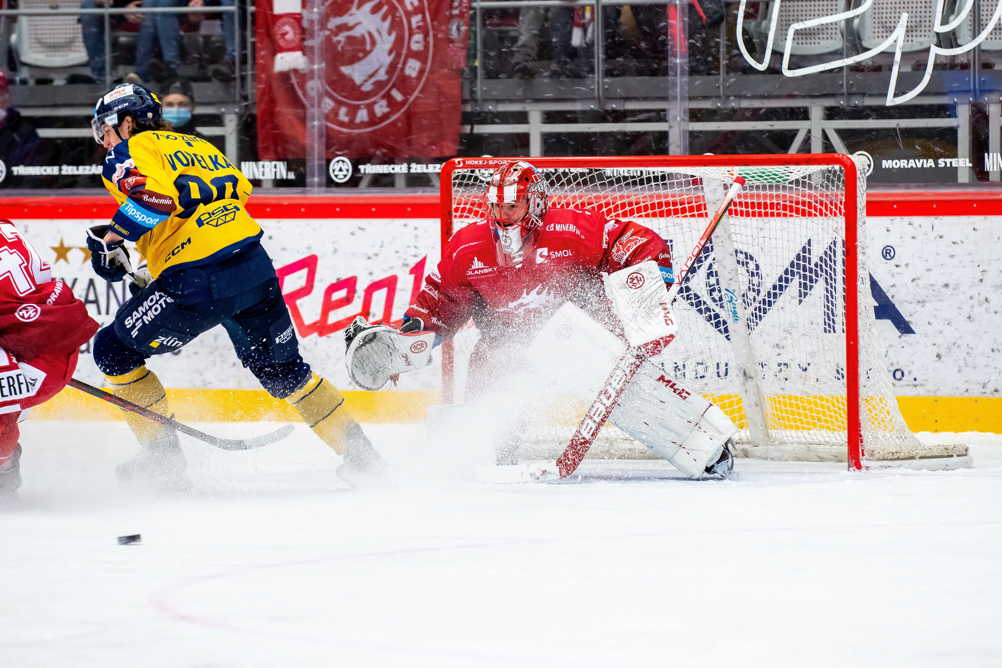 Odražená přihrávka od Vladimíra Svačiny míří přímo na Andreje Nestrašila