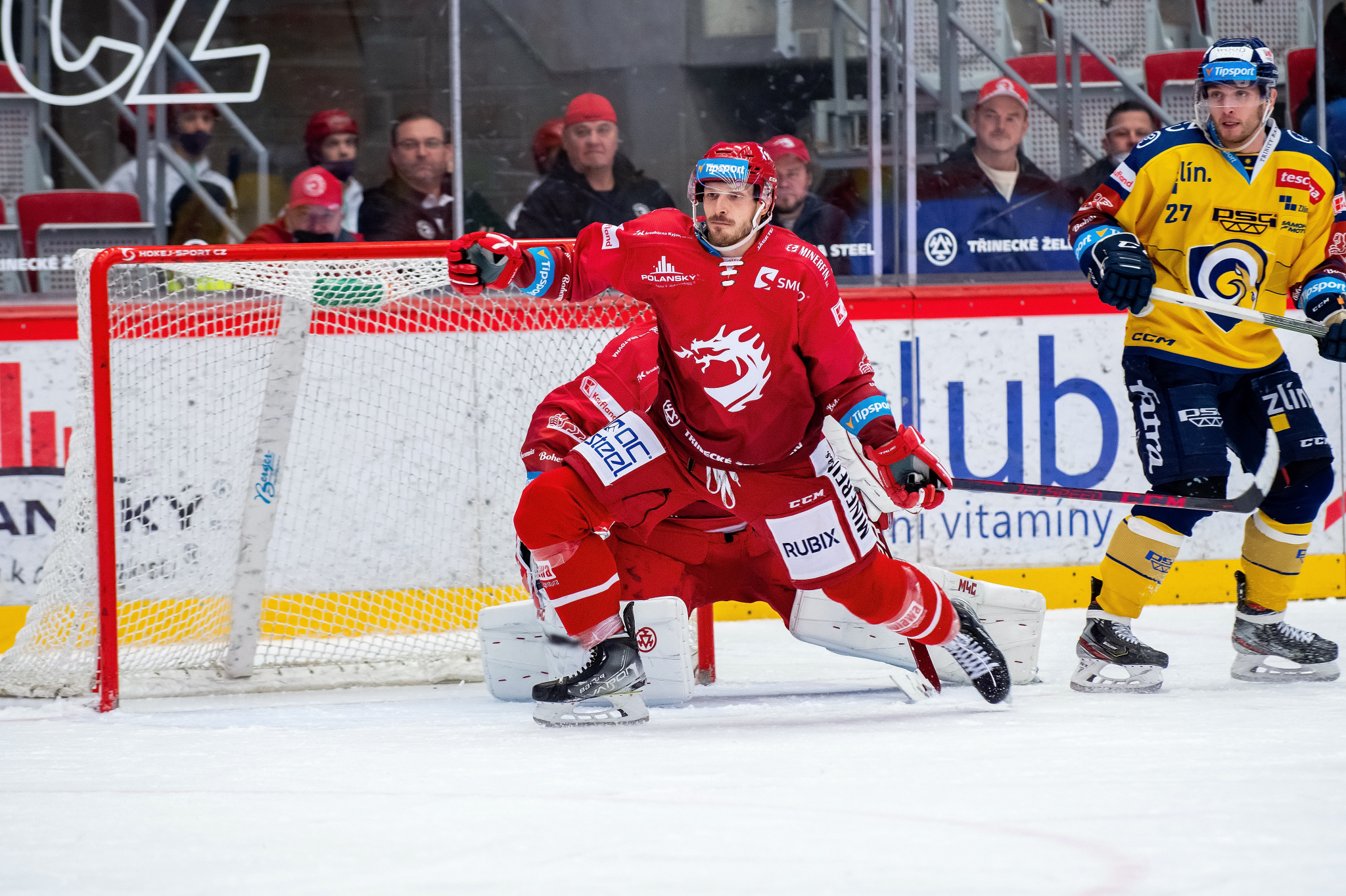 Jakub Teper se přesouvá aby se pokusil zablokovat střelu