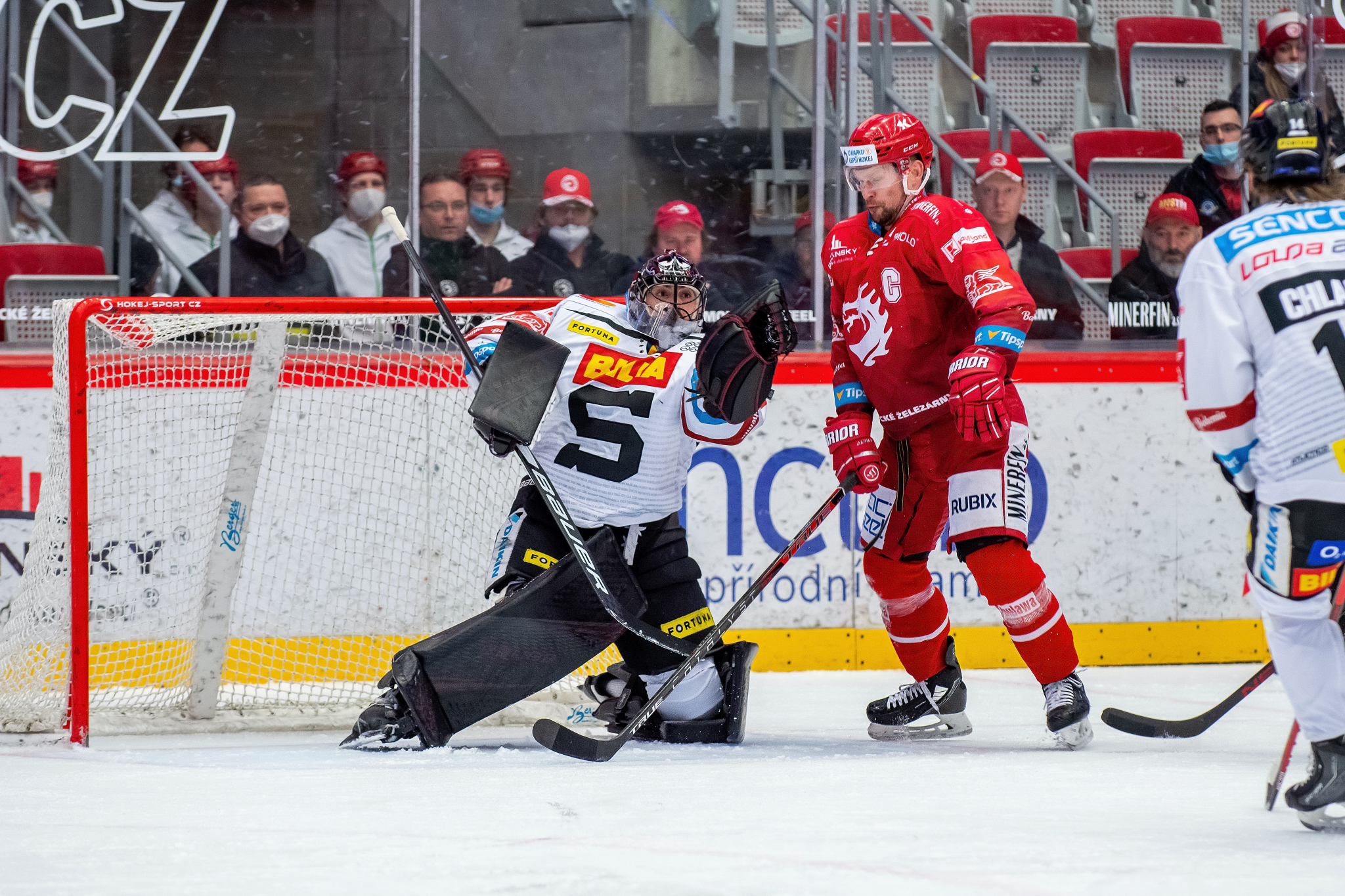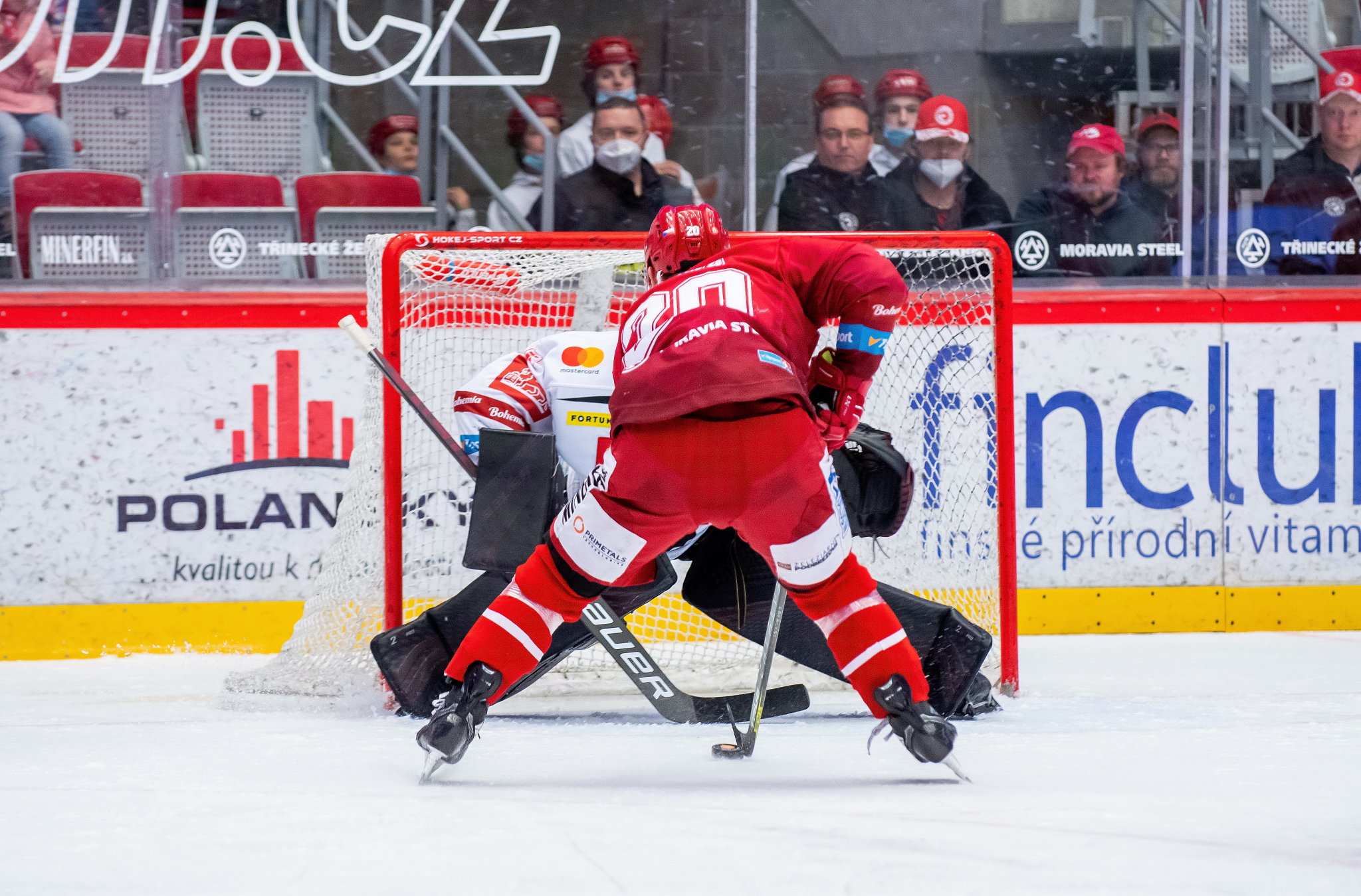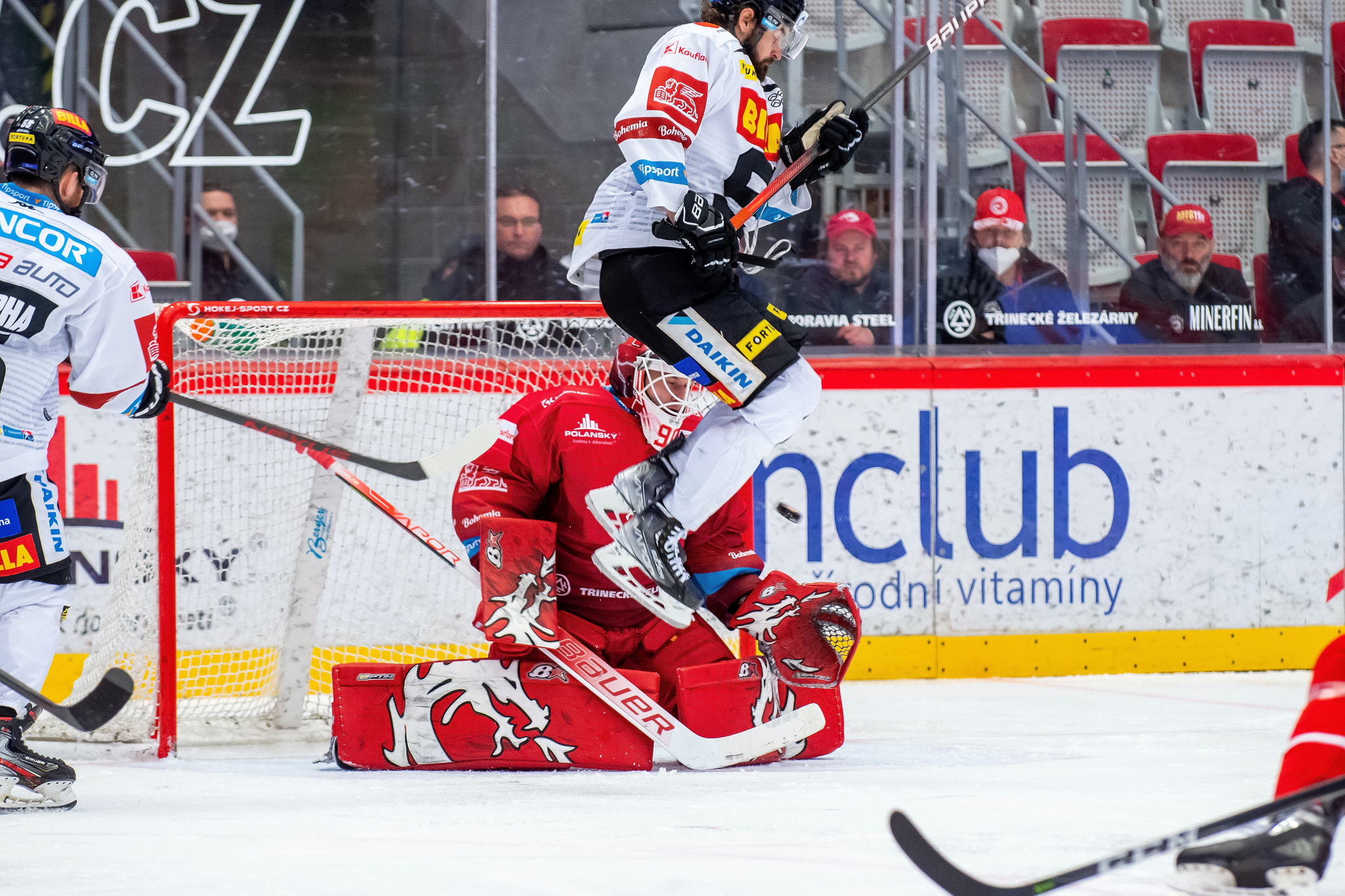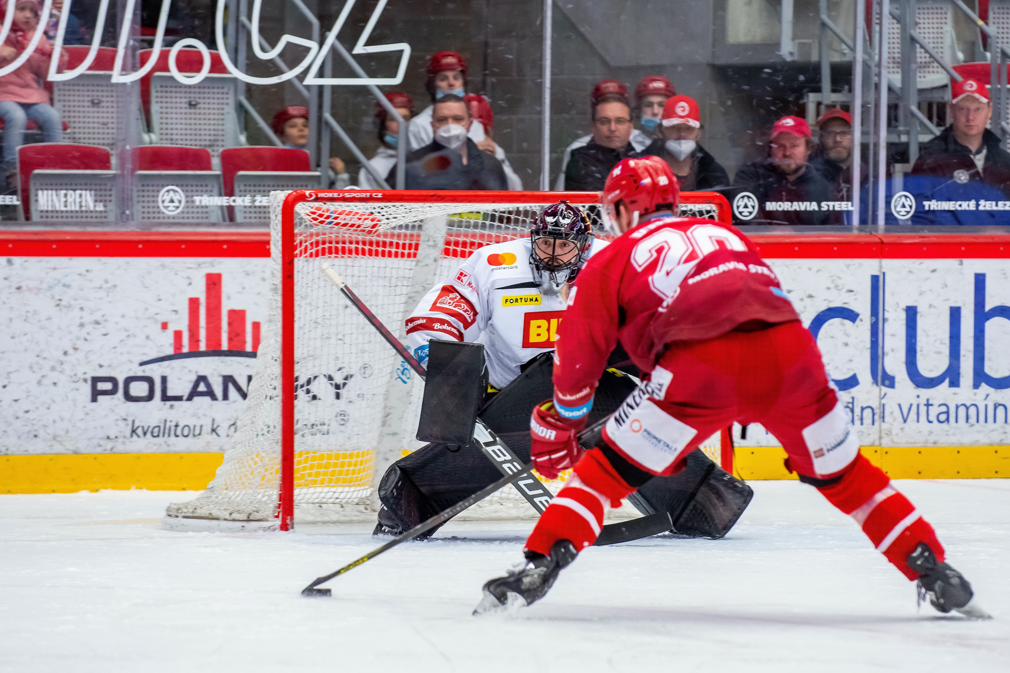 Přesilovka 5 na 3 a Patrik Hrehorčák před Matějem Machovským