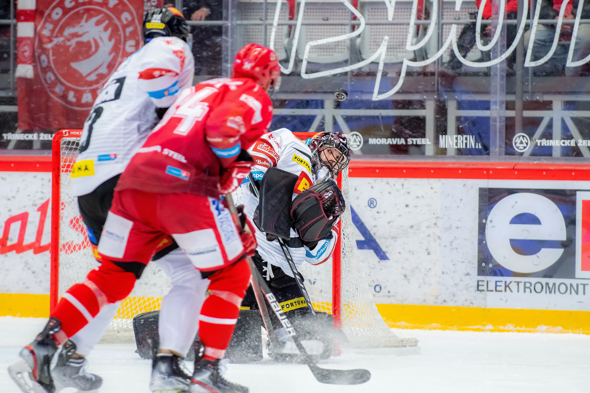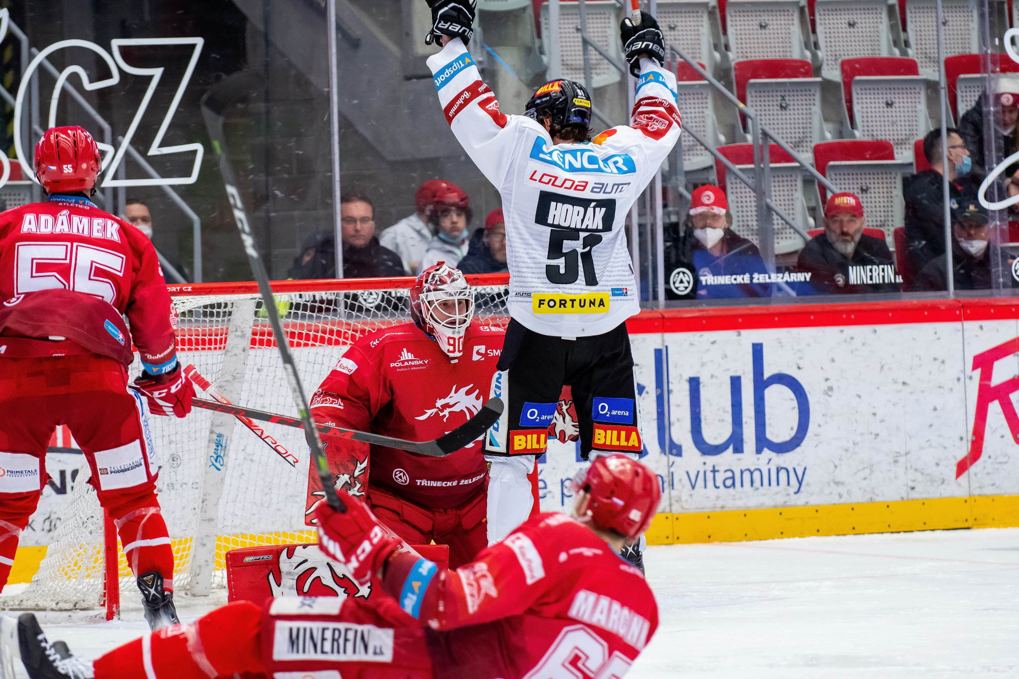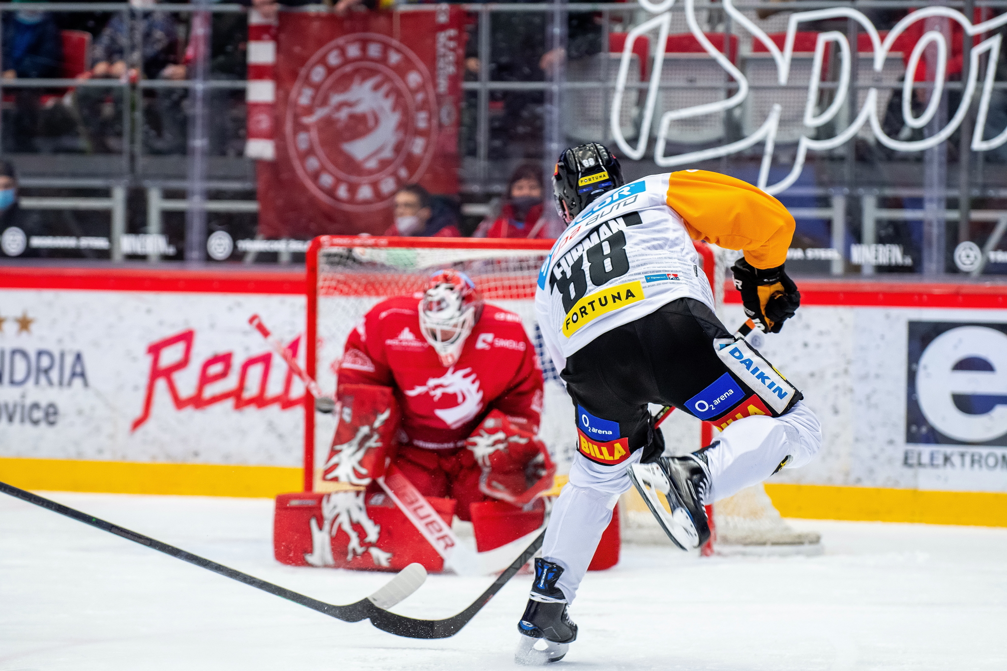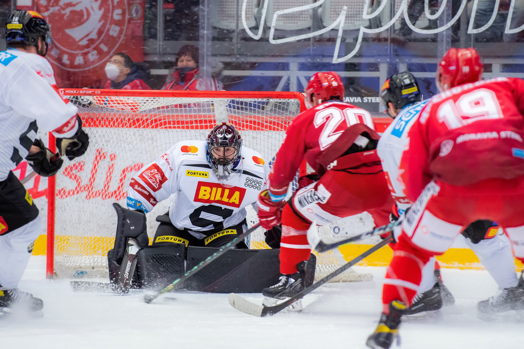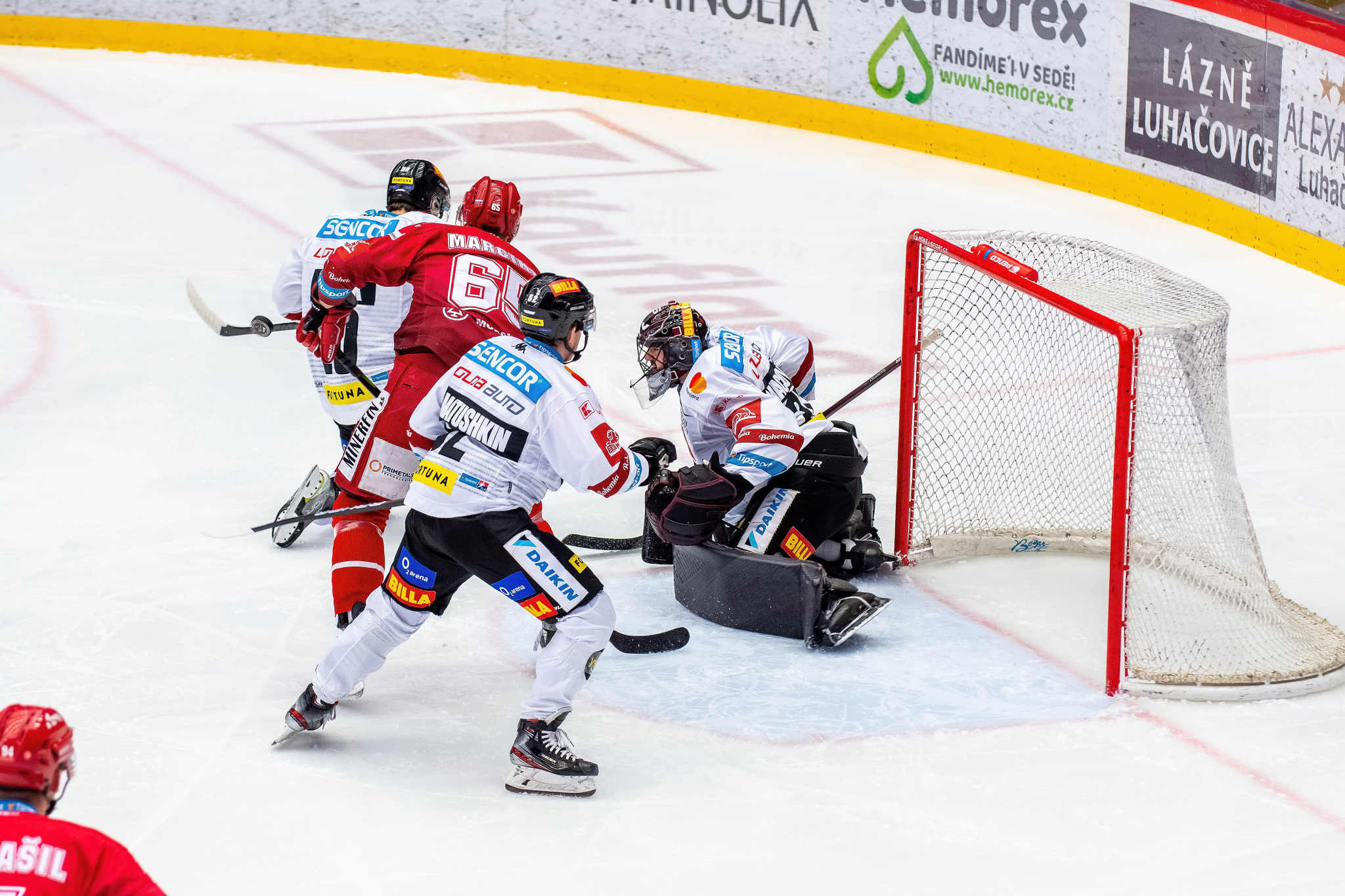 Přesilovka 5 na 3 a Patrik Hrehorčák před Matějem Machovským