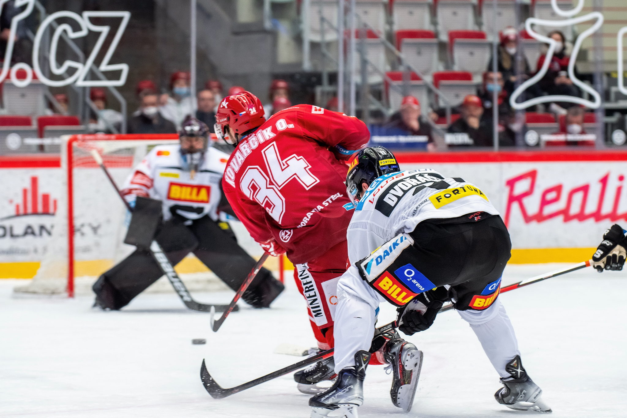 Ondra Kovařčík musel střílet - za zády už měl obránce Tomáše Dvoráka