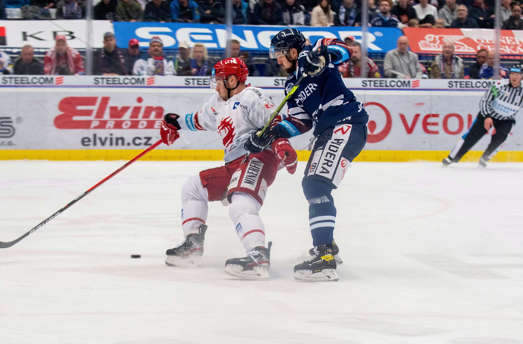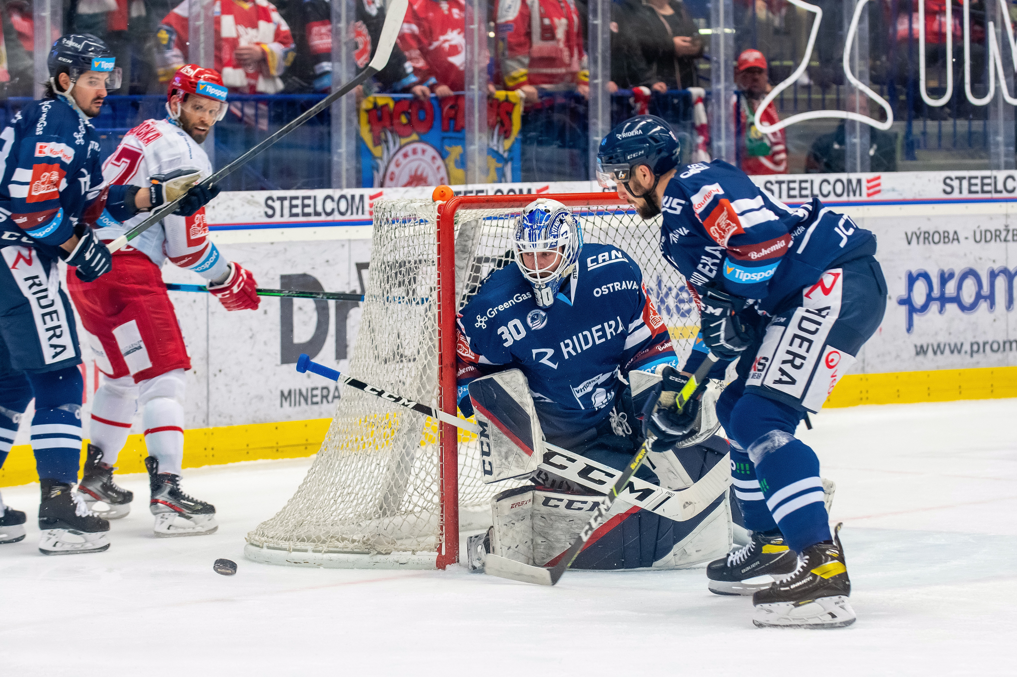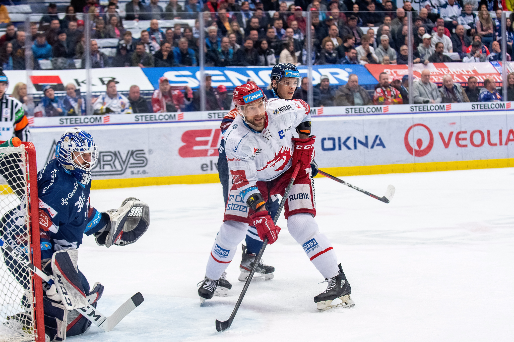 Tomáš Marcinko se snaží dorazit odražený puk