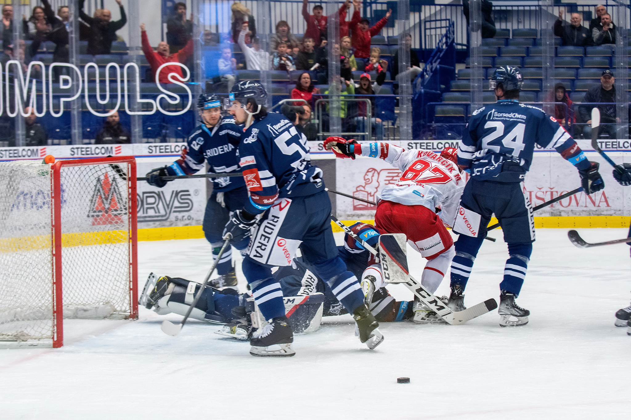 Ondra Kacetl a Patrik Hrehorčák během krizové situace v naší bráně