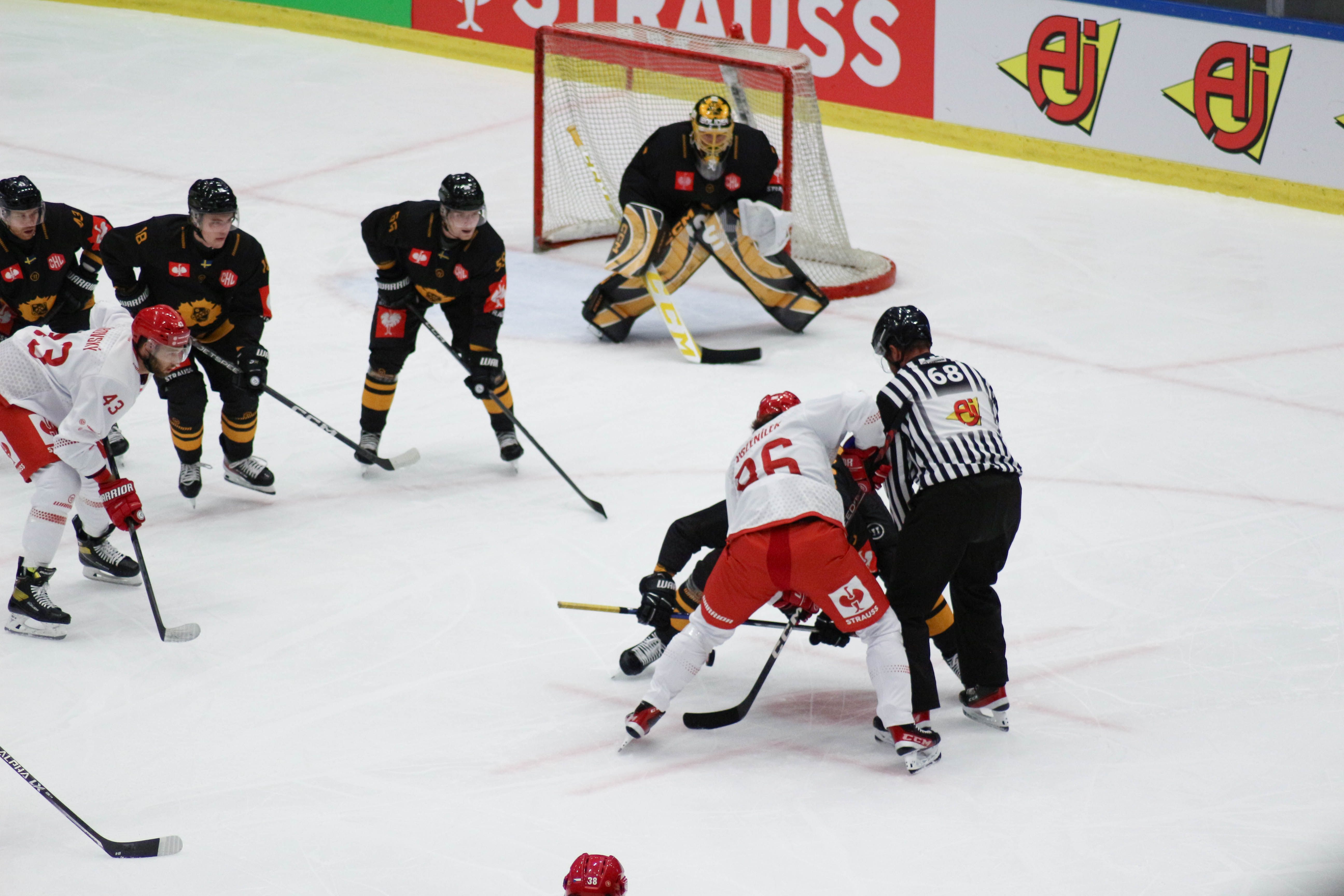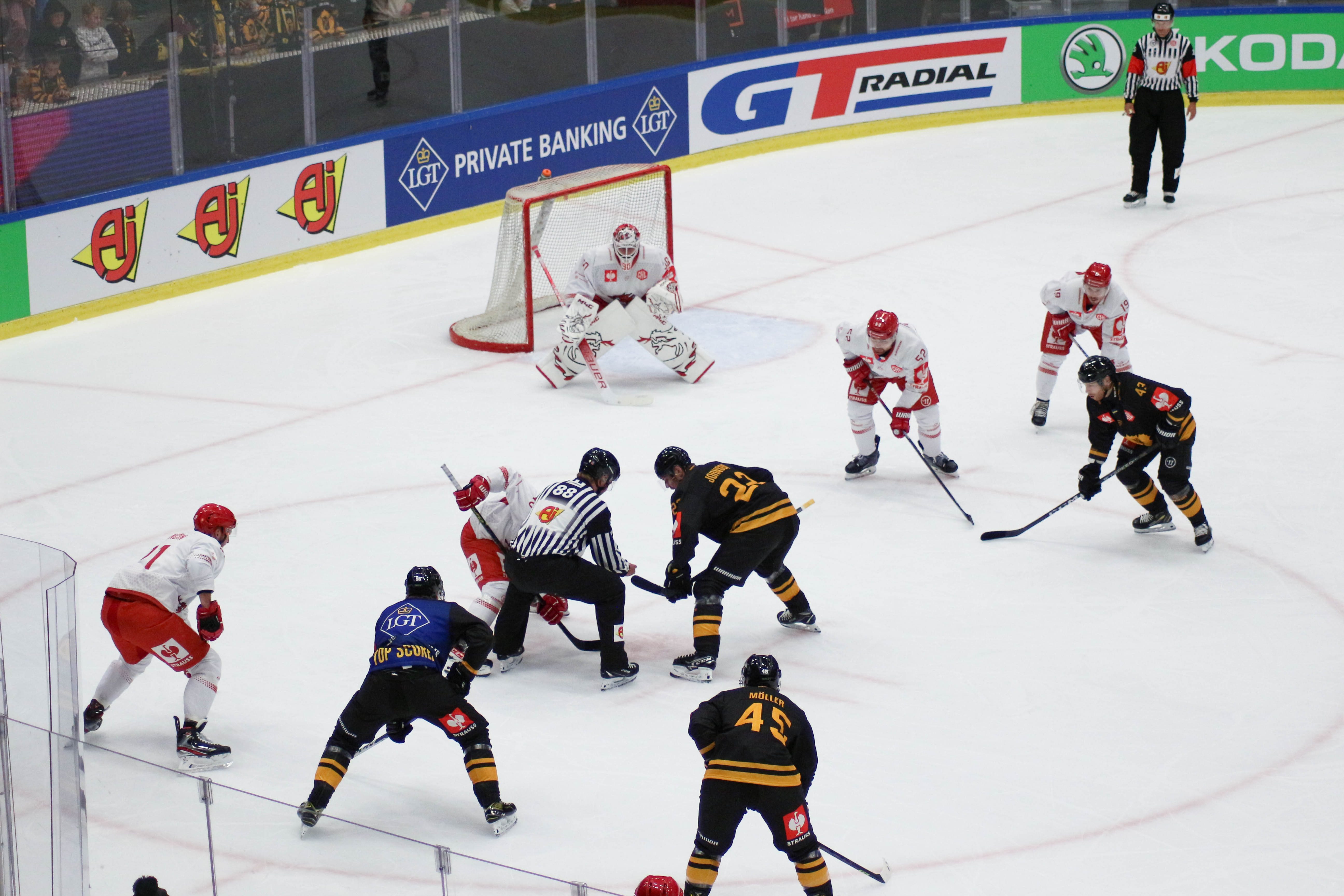 Hráči na buly v obranném pásmu
