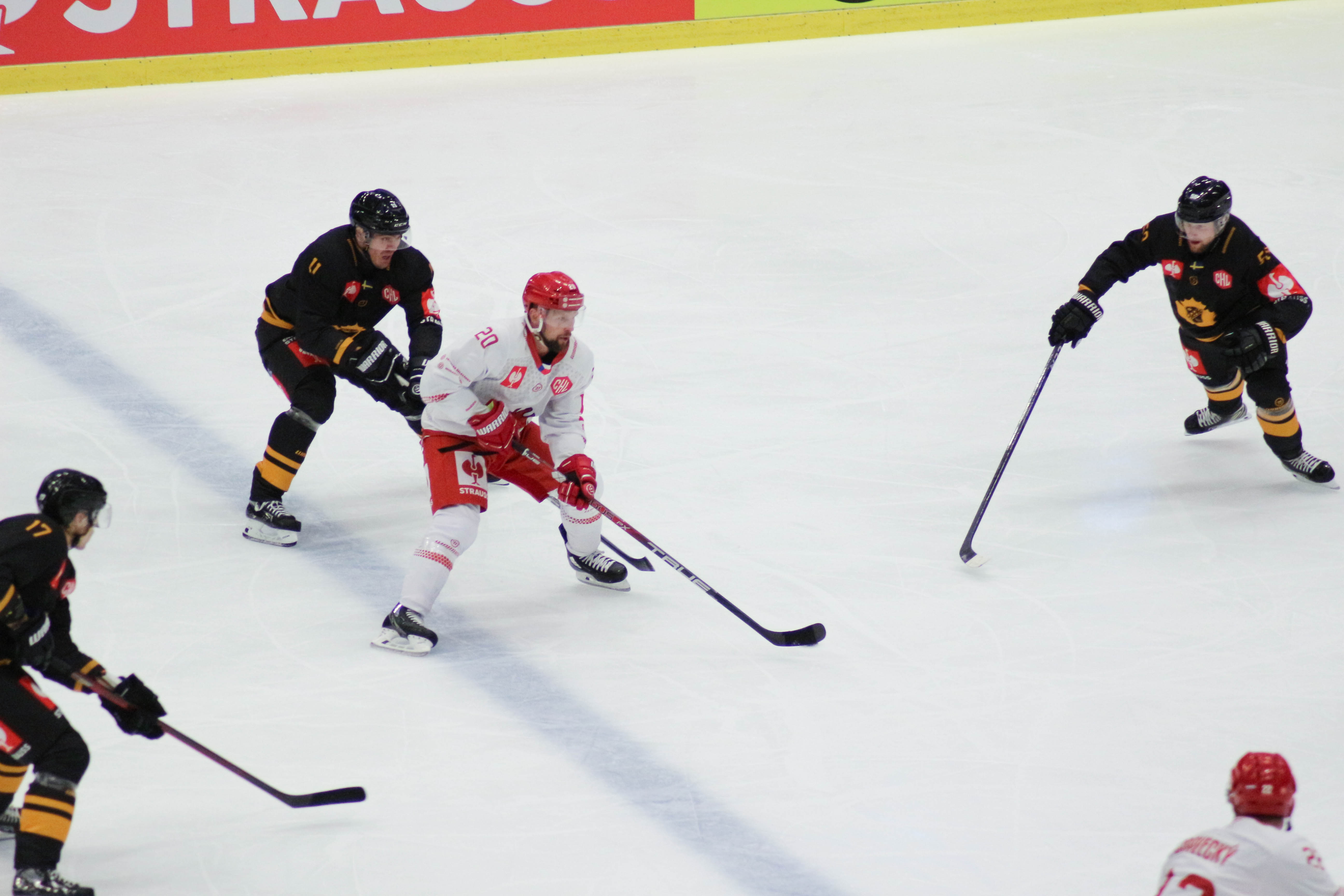 Martin Marinčin se snaží dostat puk z obranného pásma