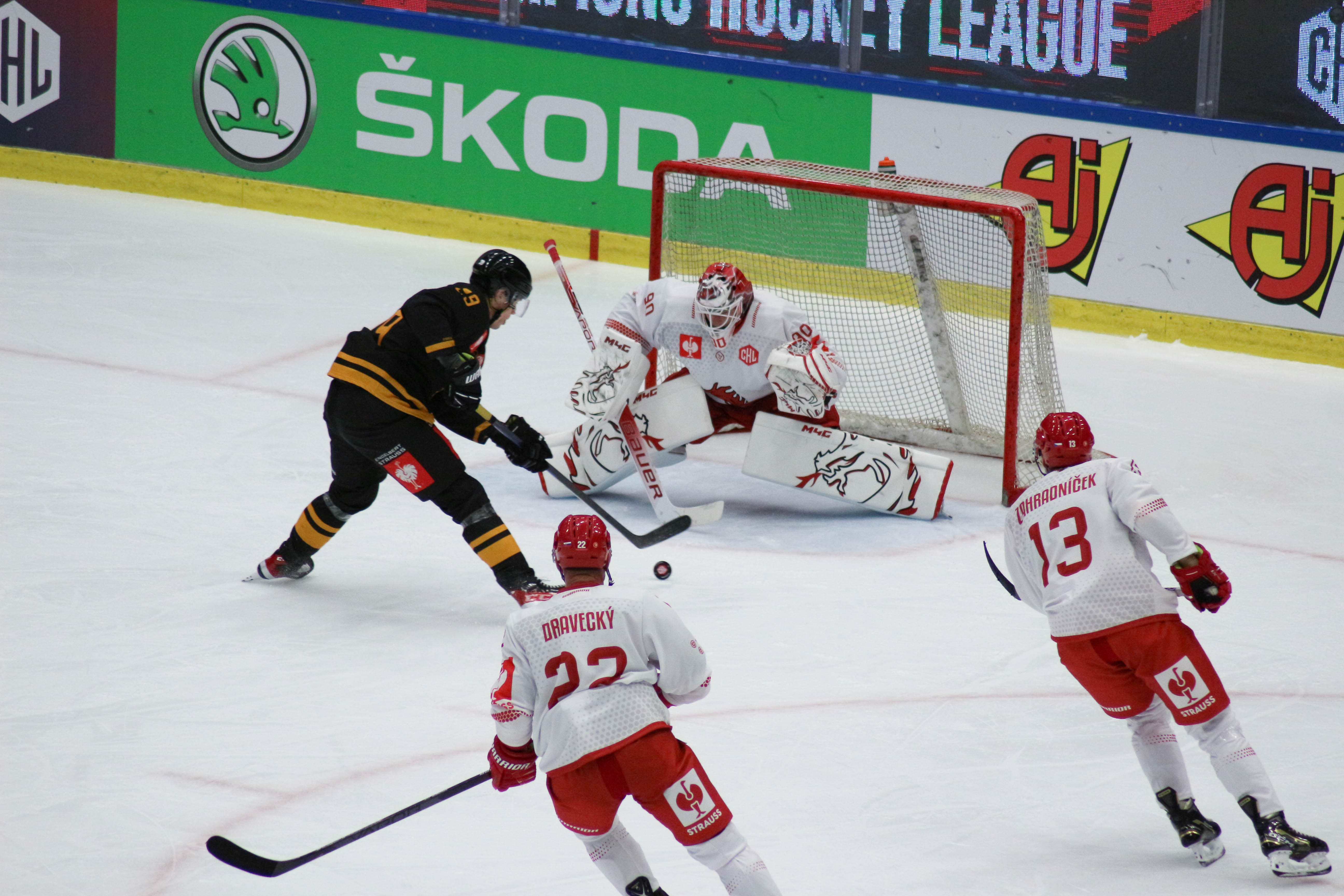 Ondra Kacetl zasahuje proti střele soupeře