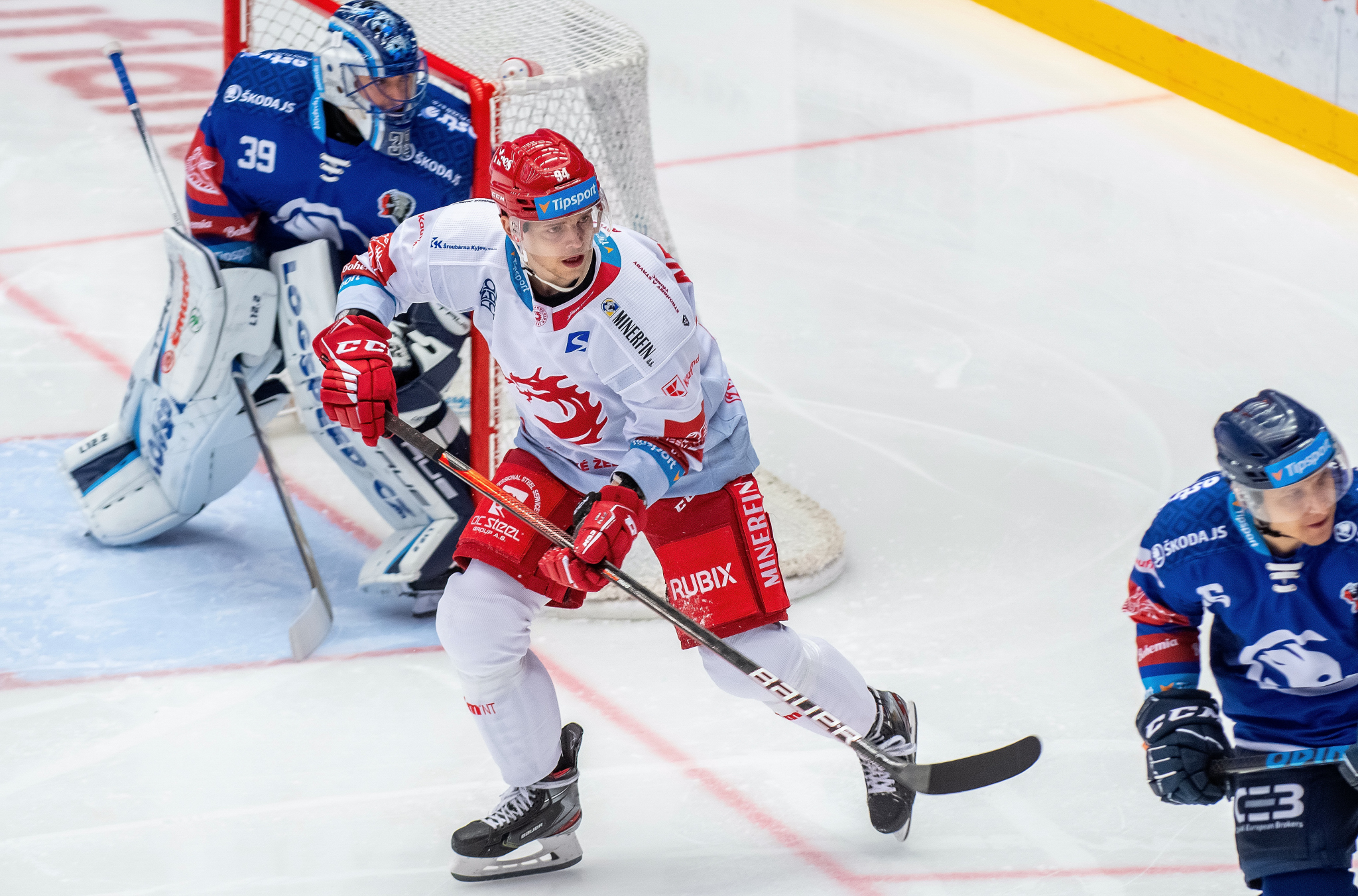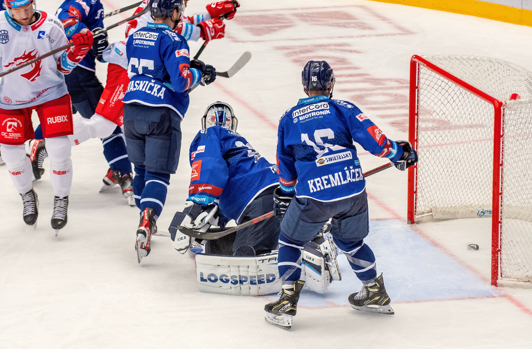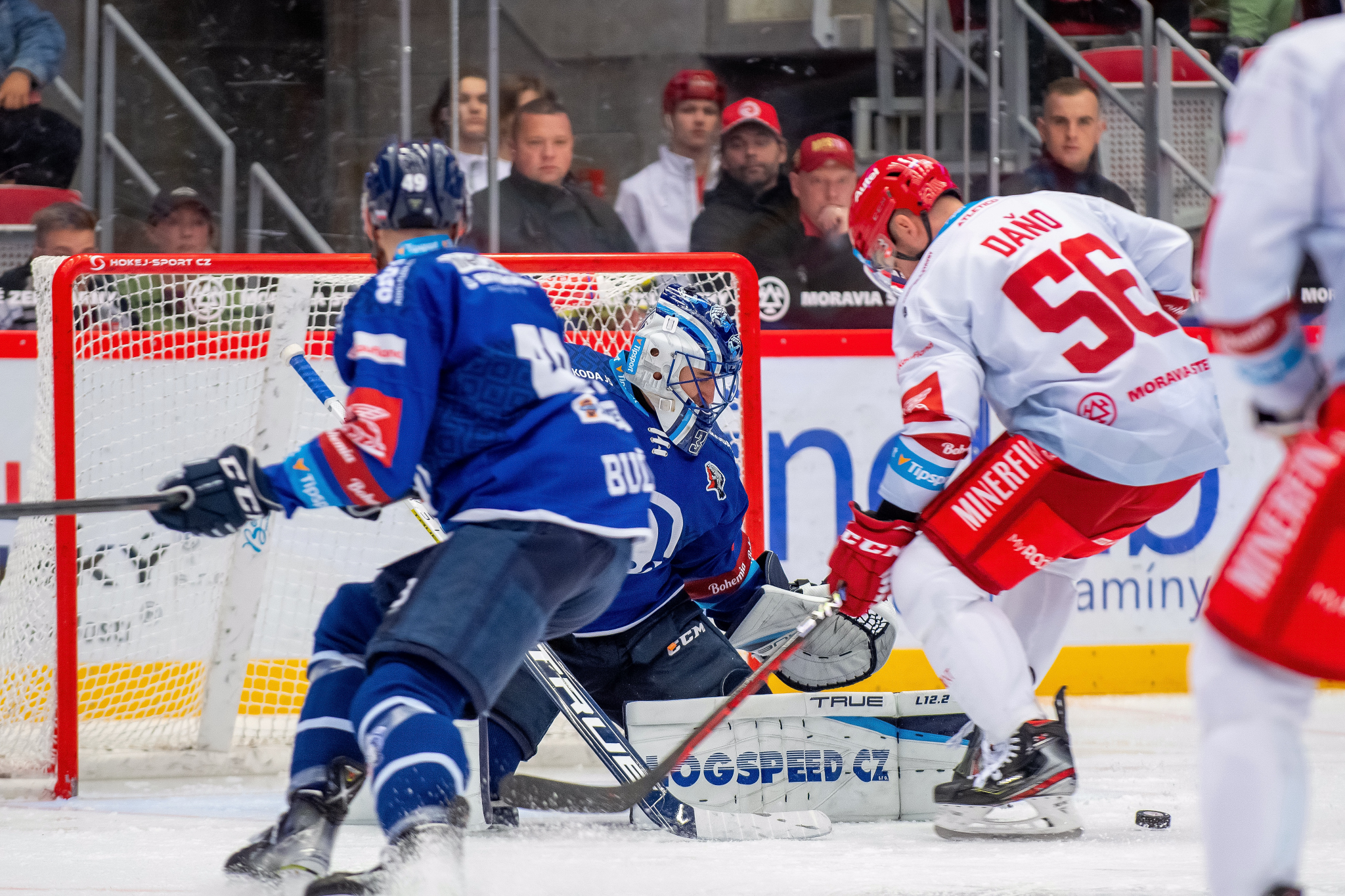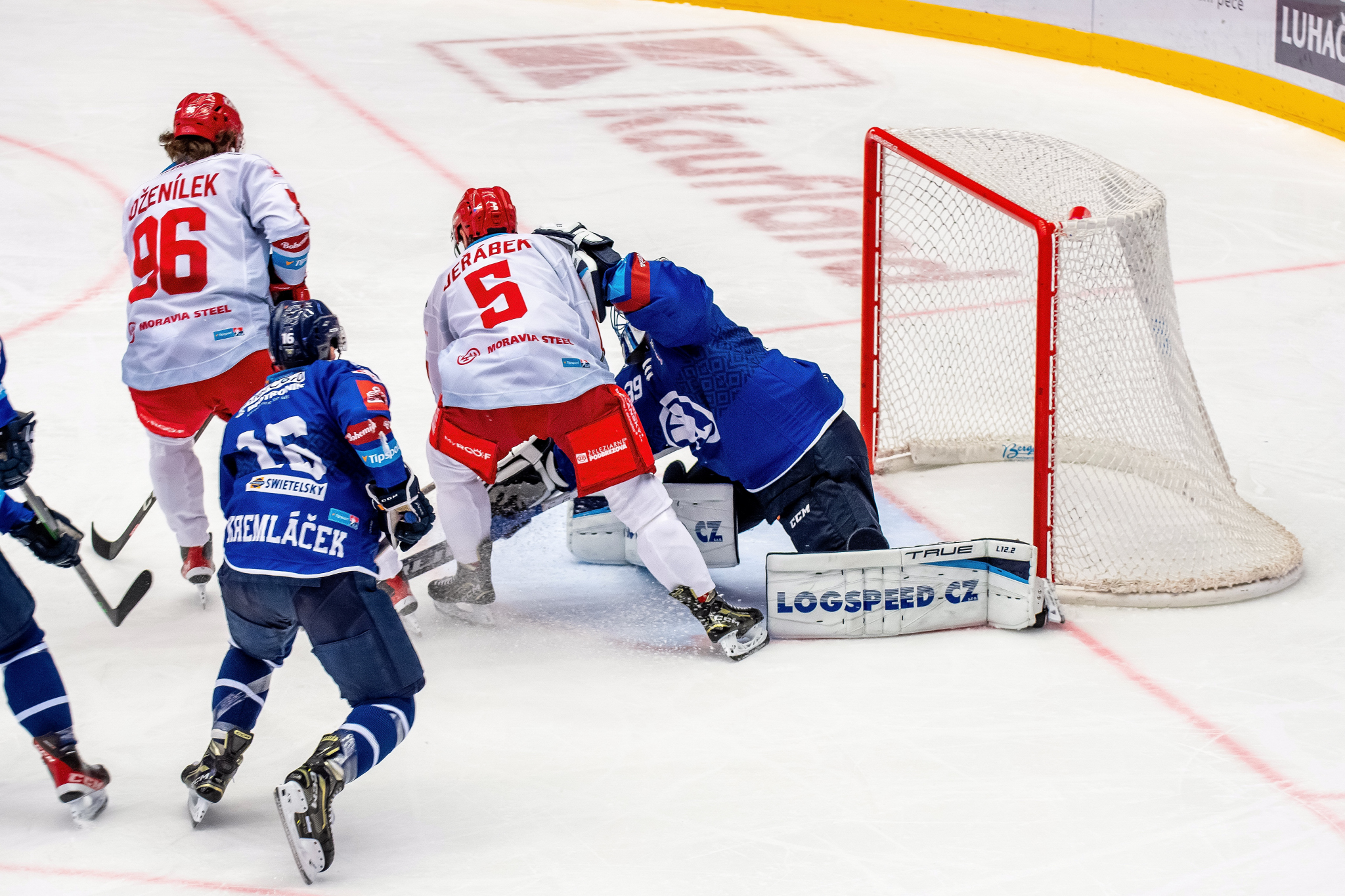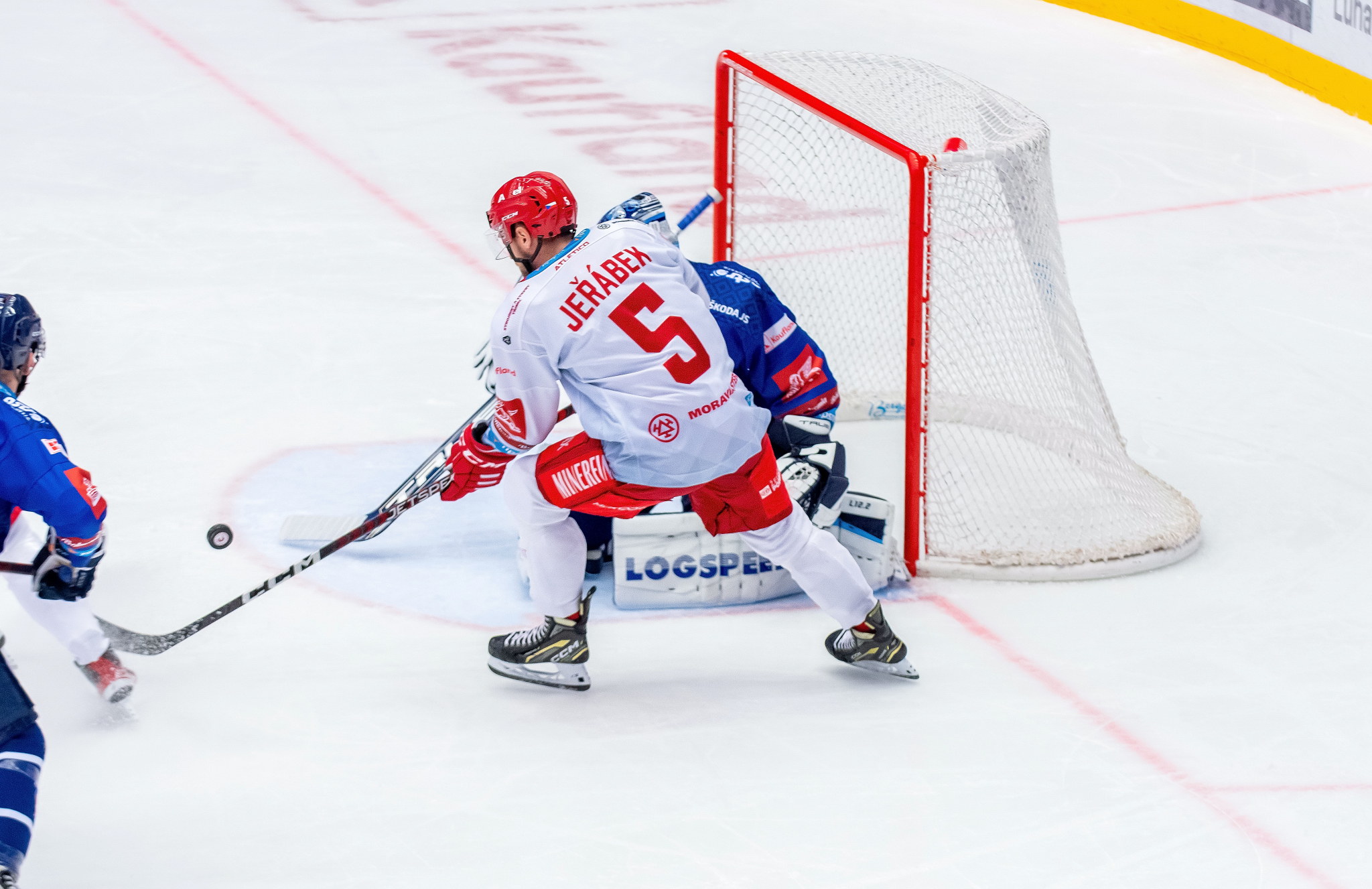 Situace těsně před vyrovnávacím gólem. Kuba Jeřábek se dostal před branku