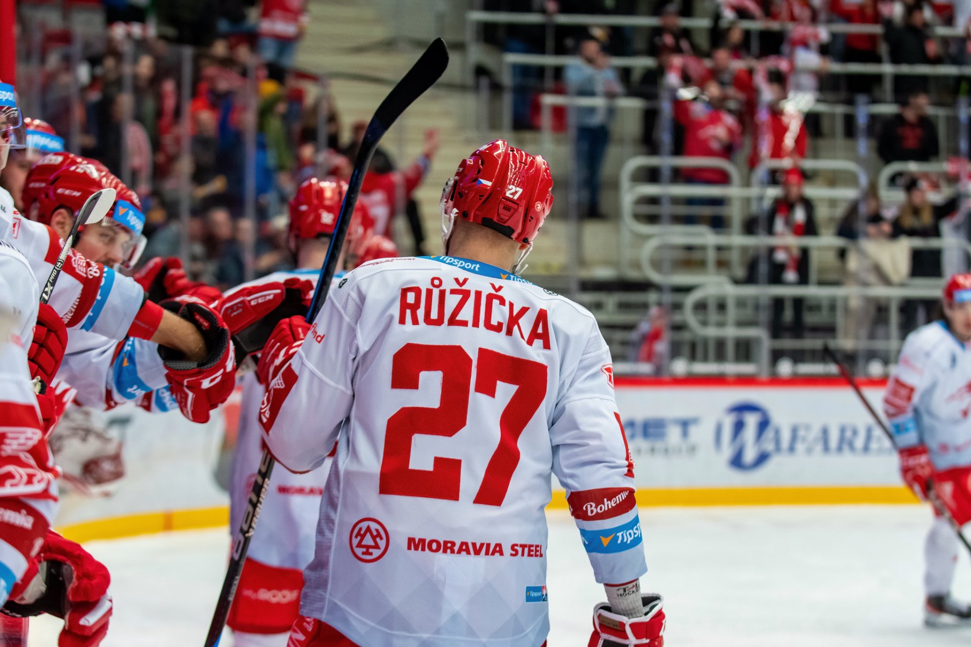 Martin Růžička si plácá se spoluhráči