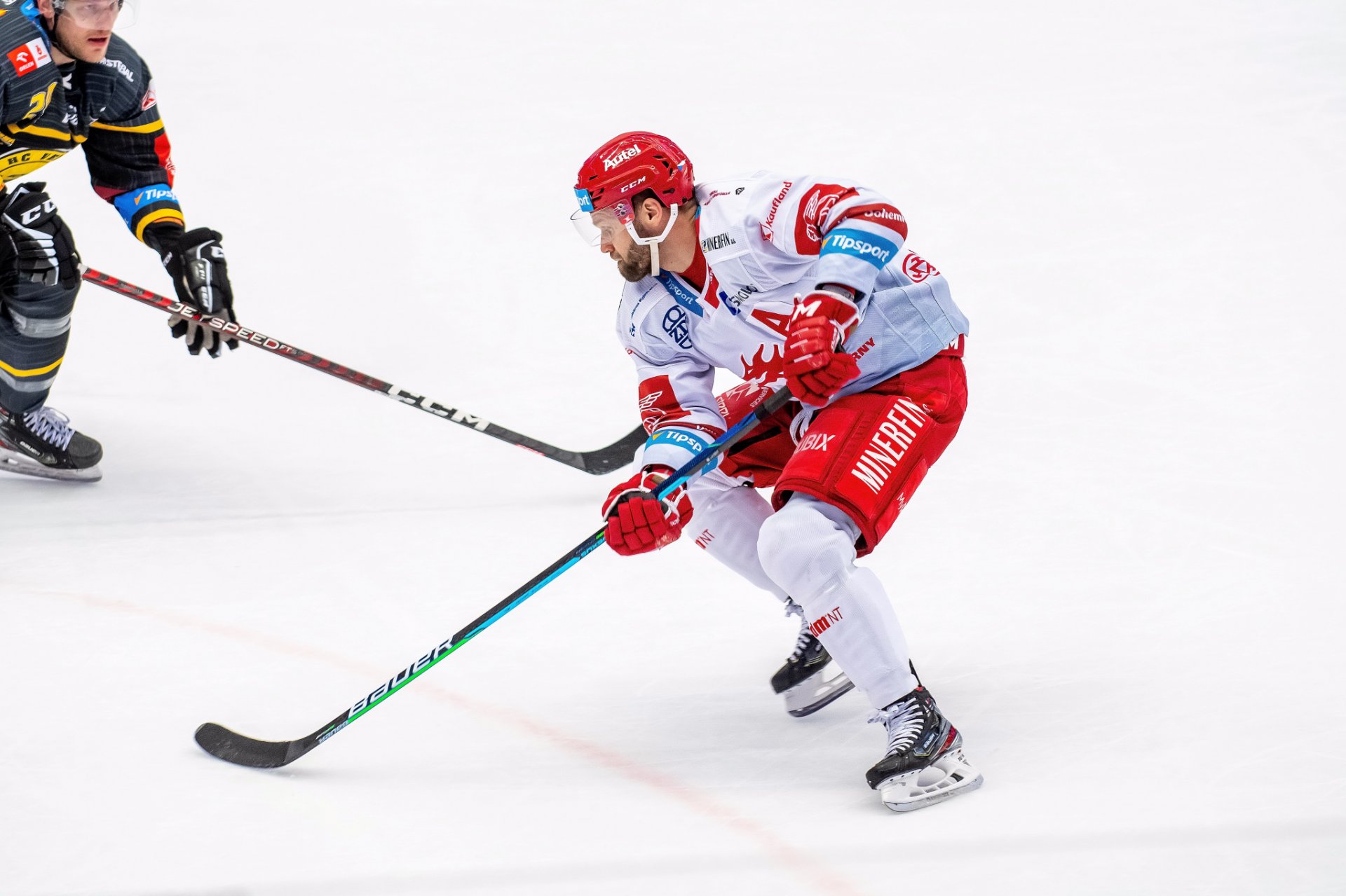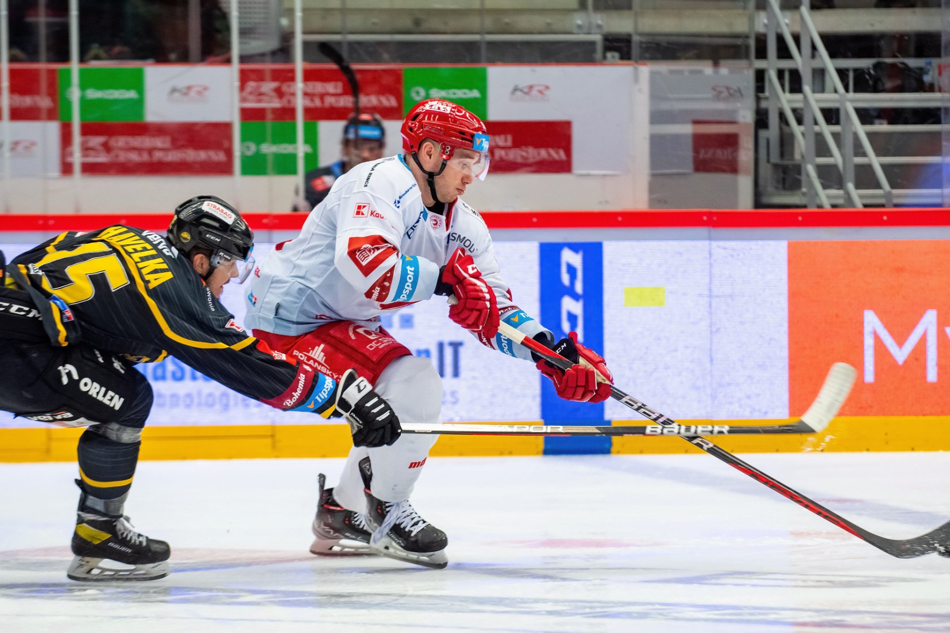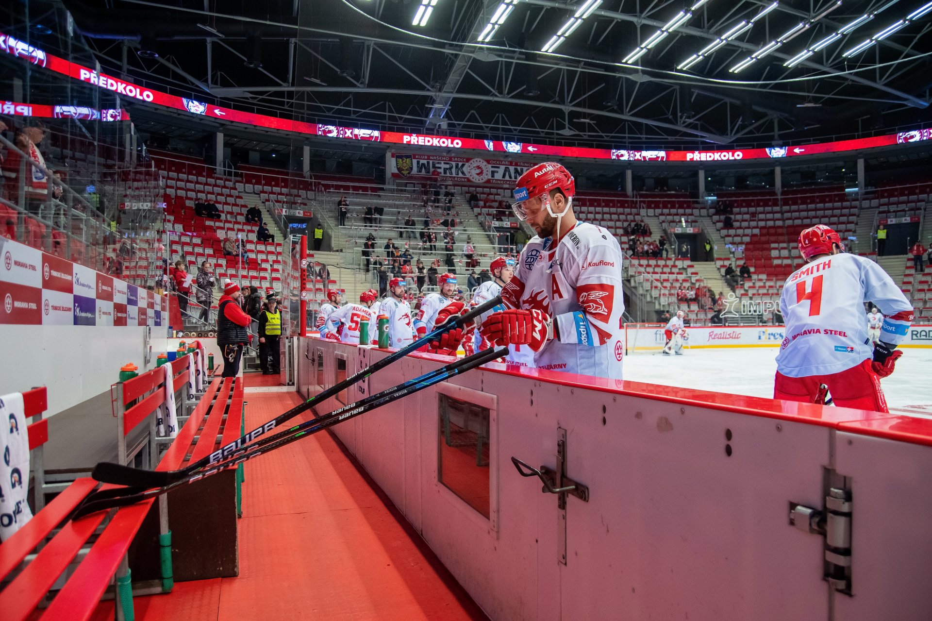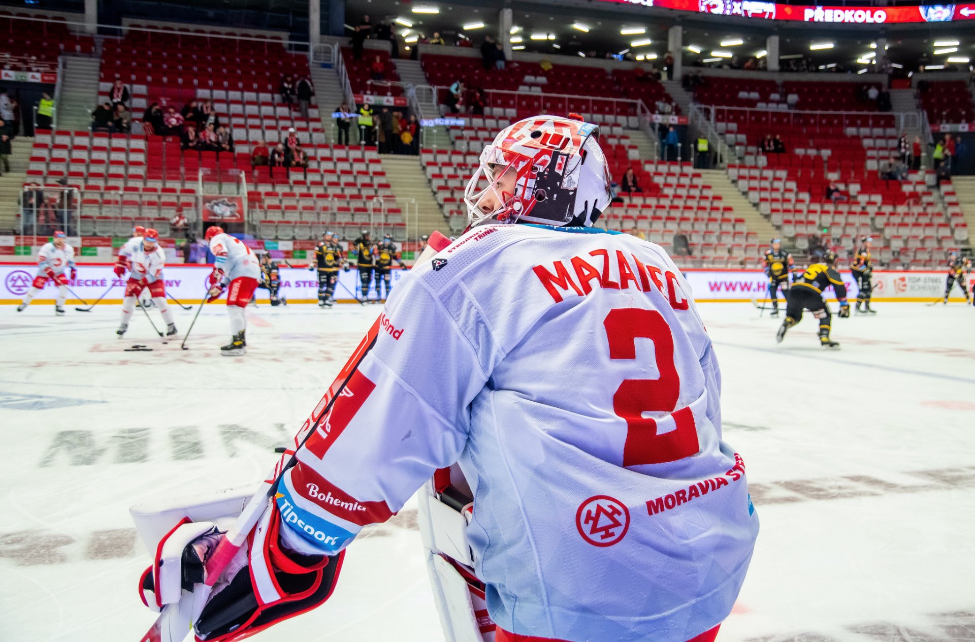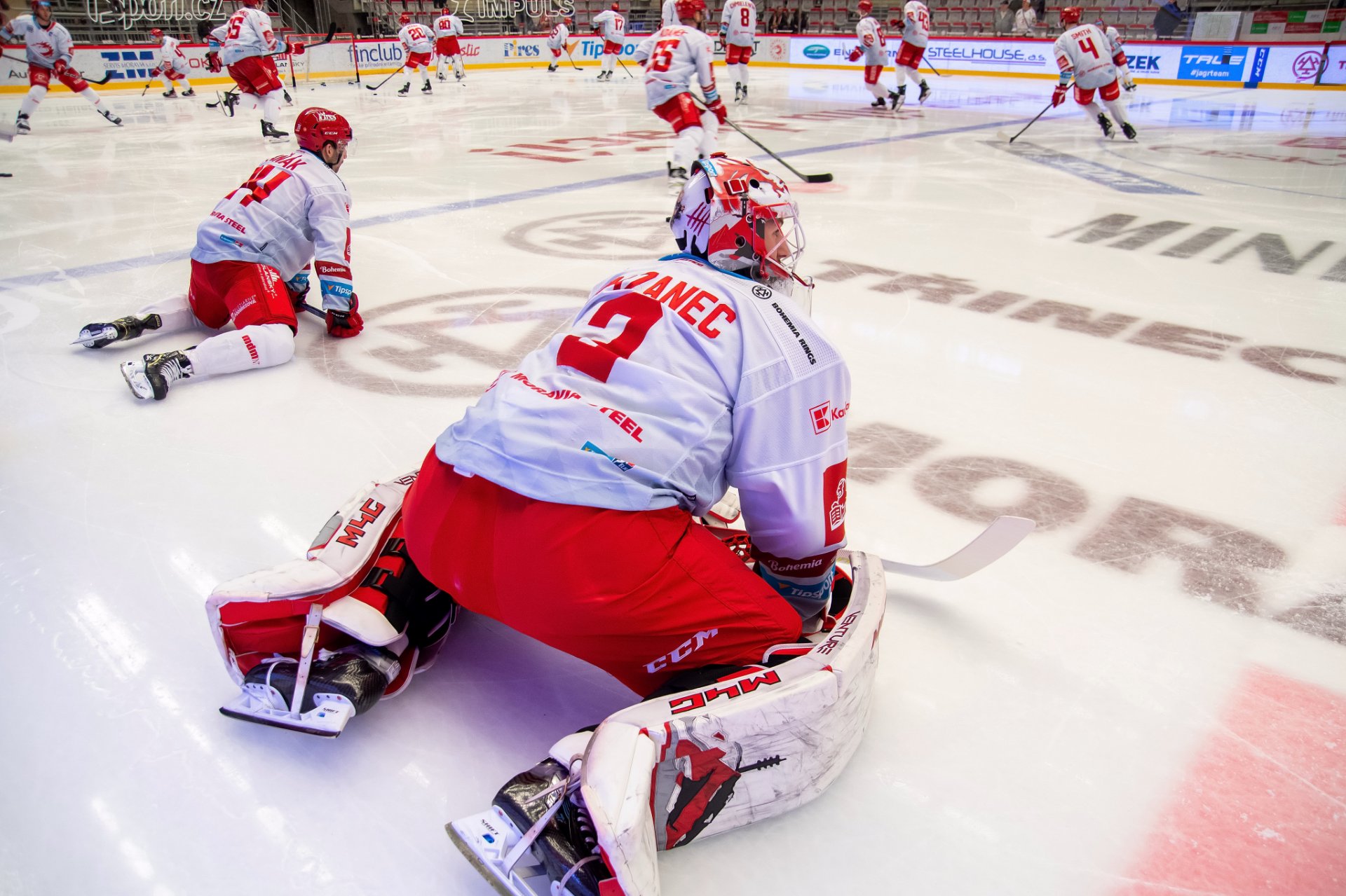 Martin Růžička si během rozbruslení postupně odzkouší všechny 3 hokejky