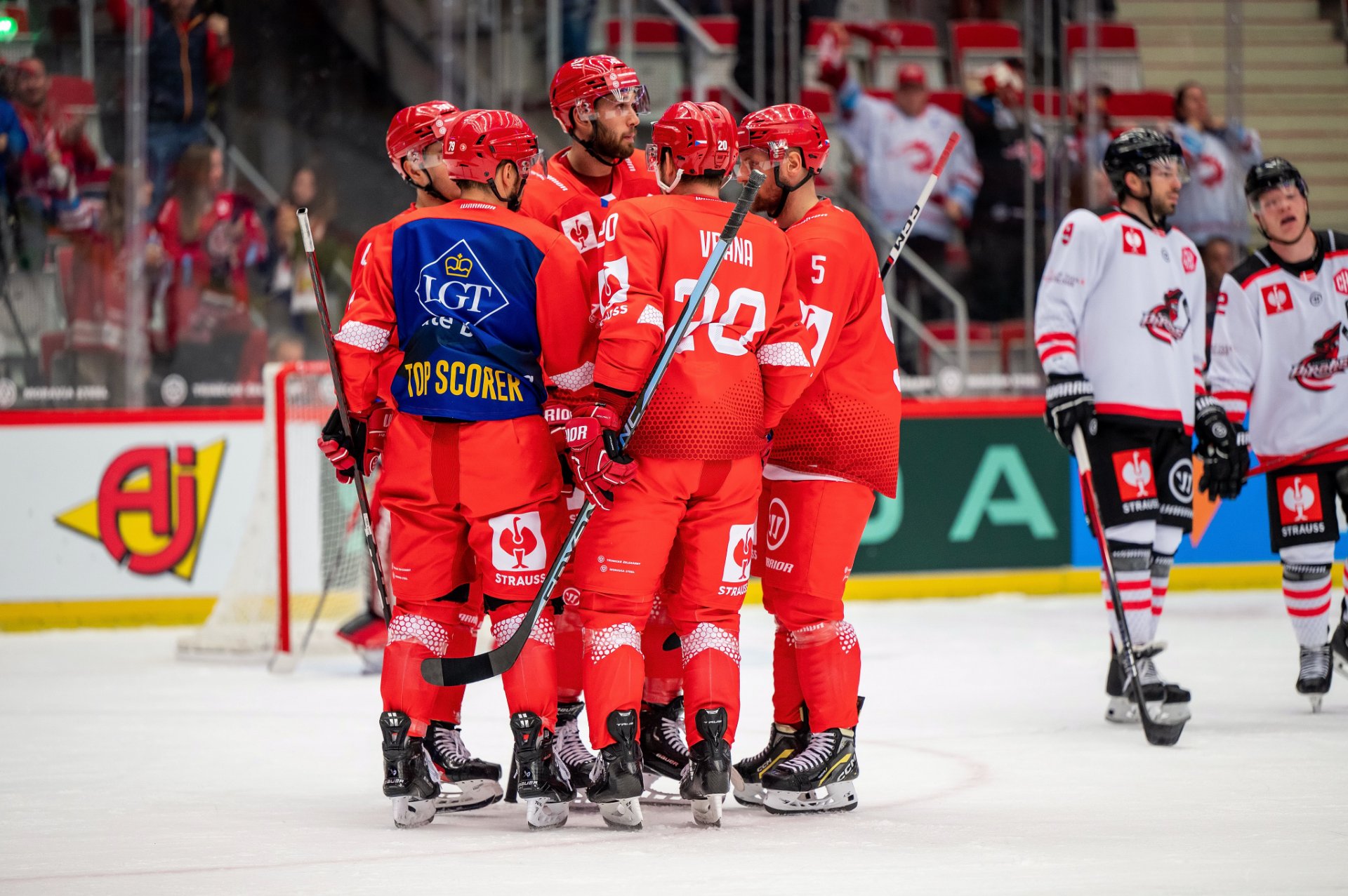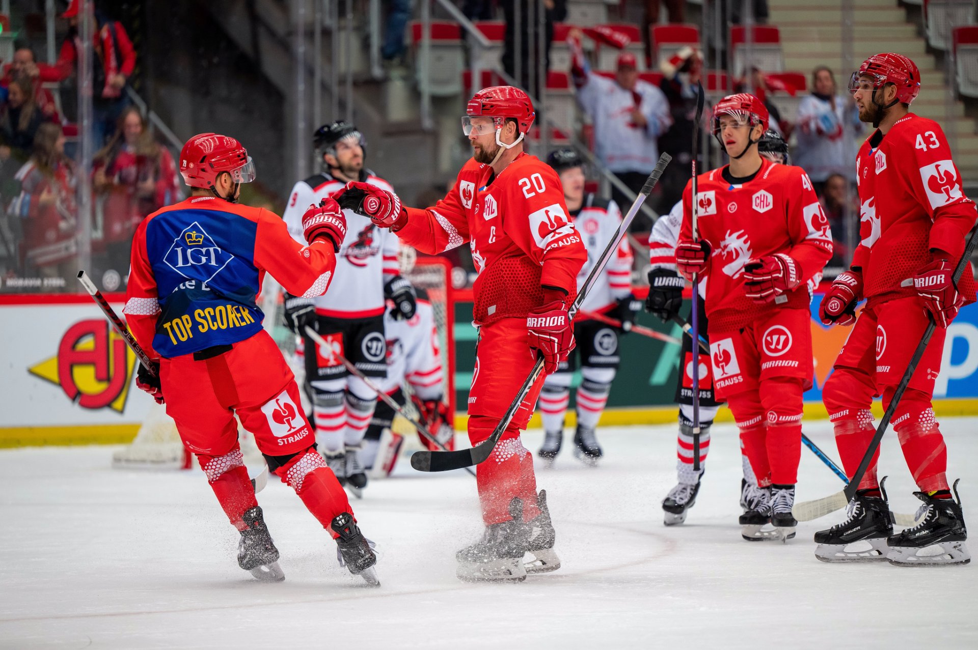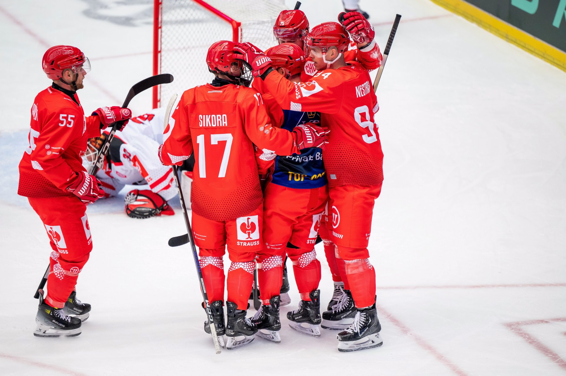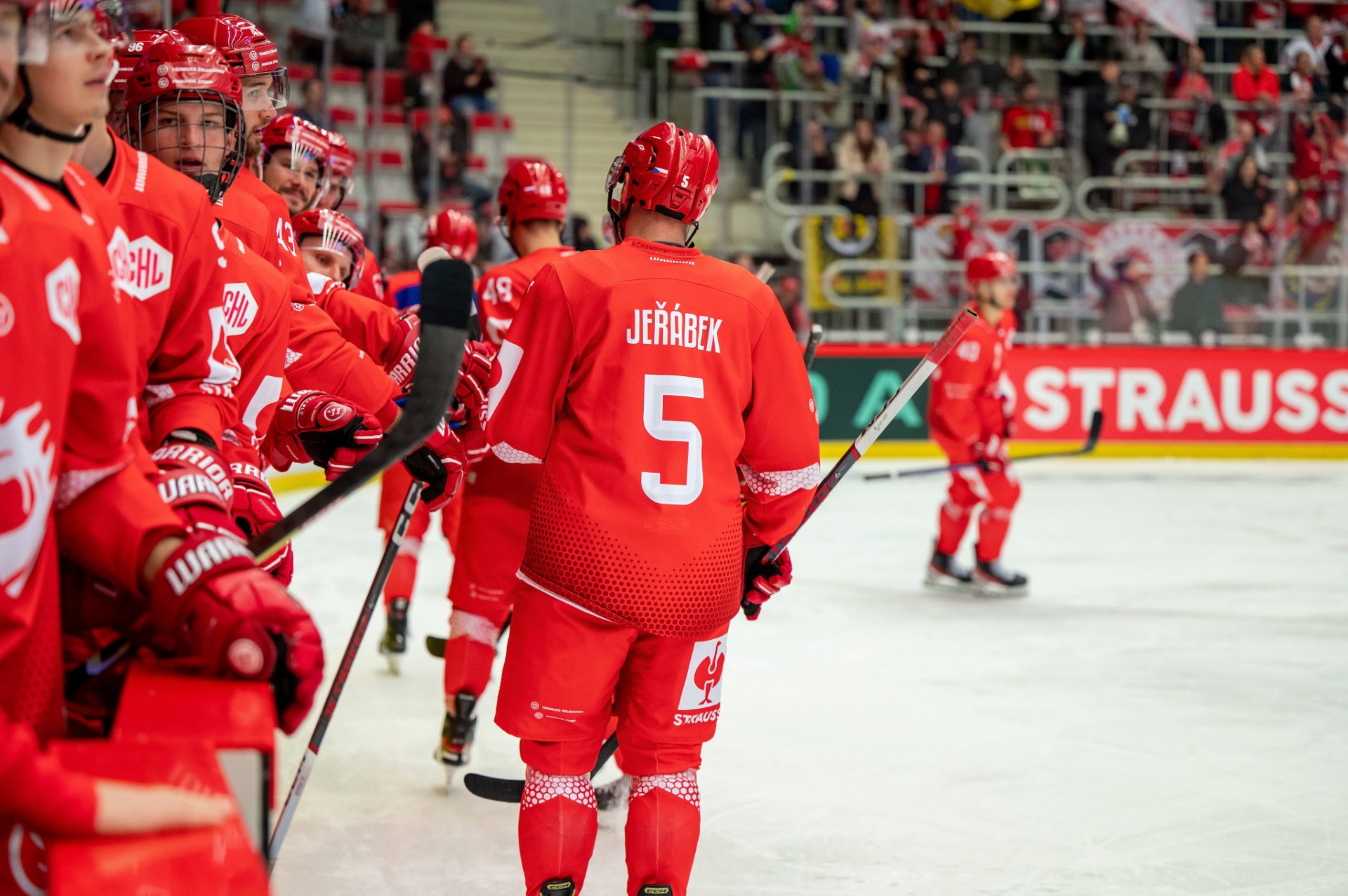 Kuba Jeřábek si plácá se spoluhráči