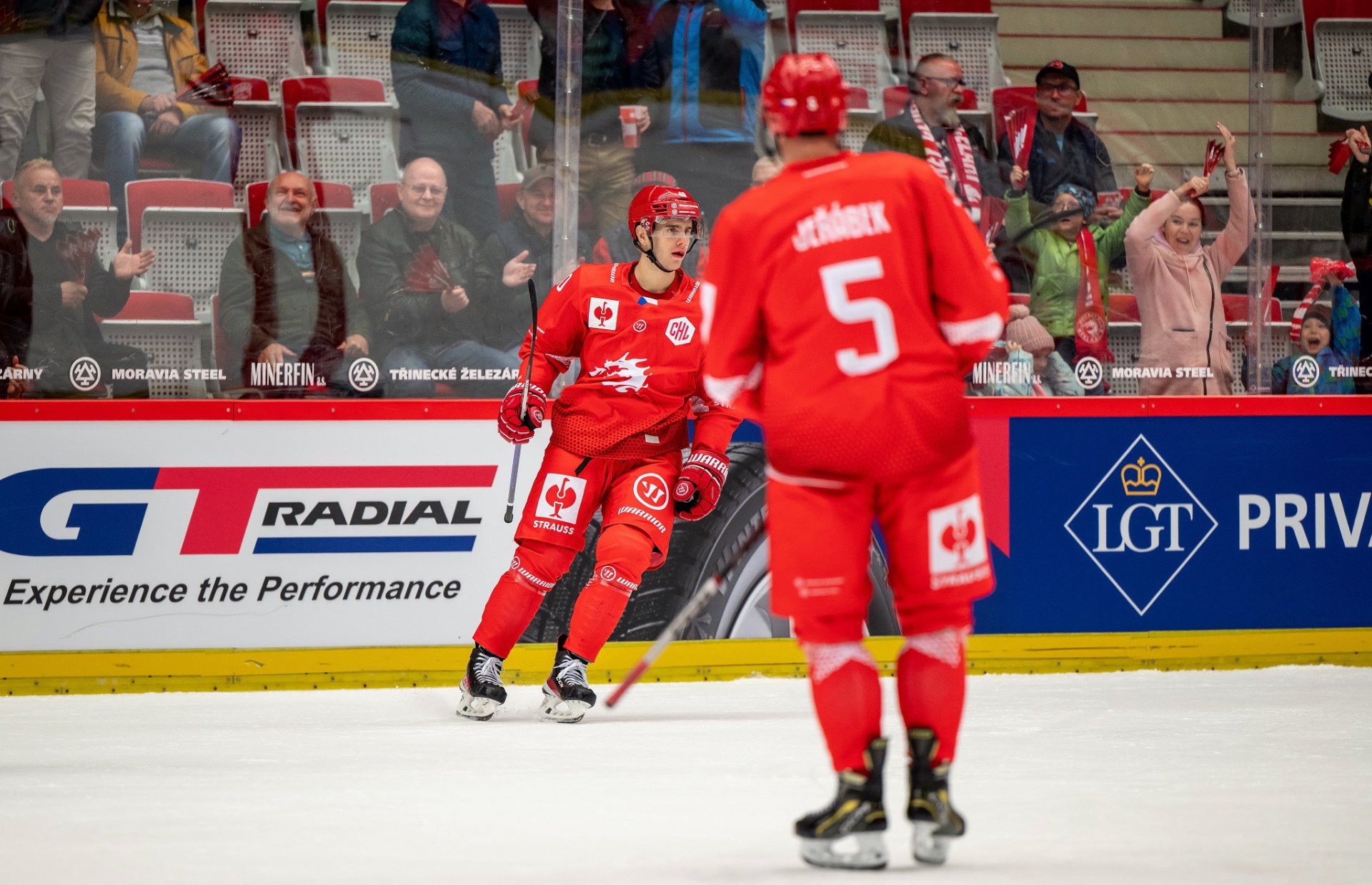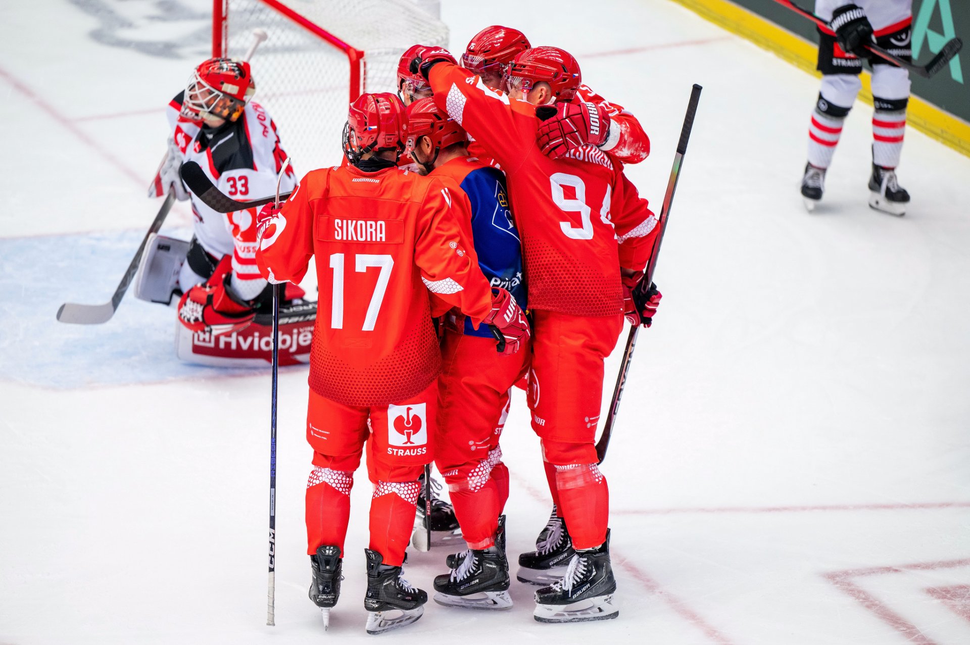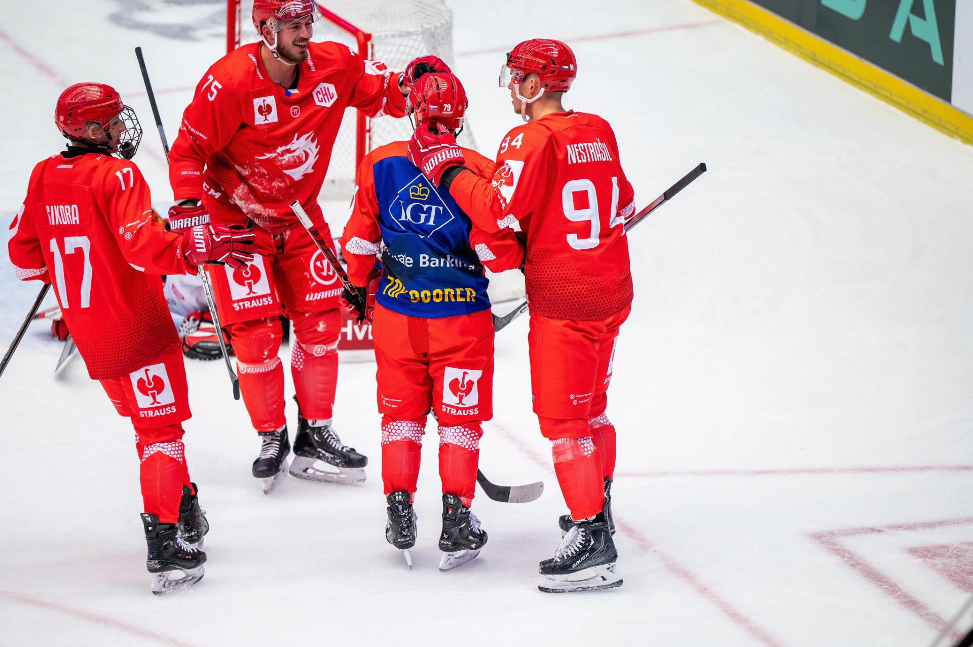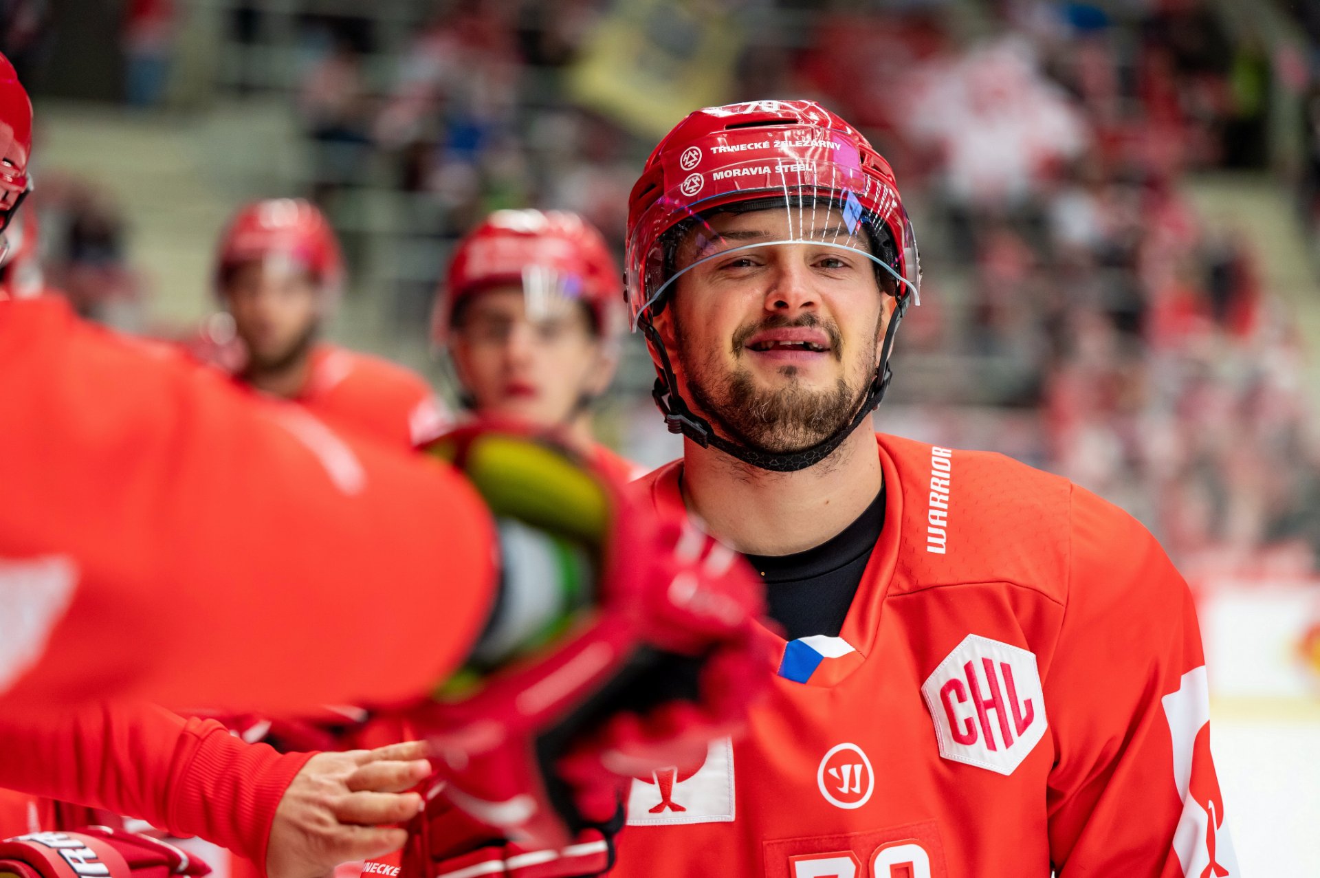Kuba Jeřábek si plácá se spoluhráči