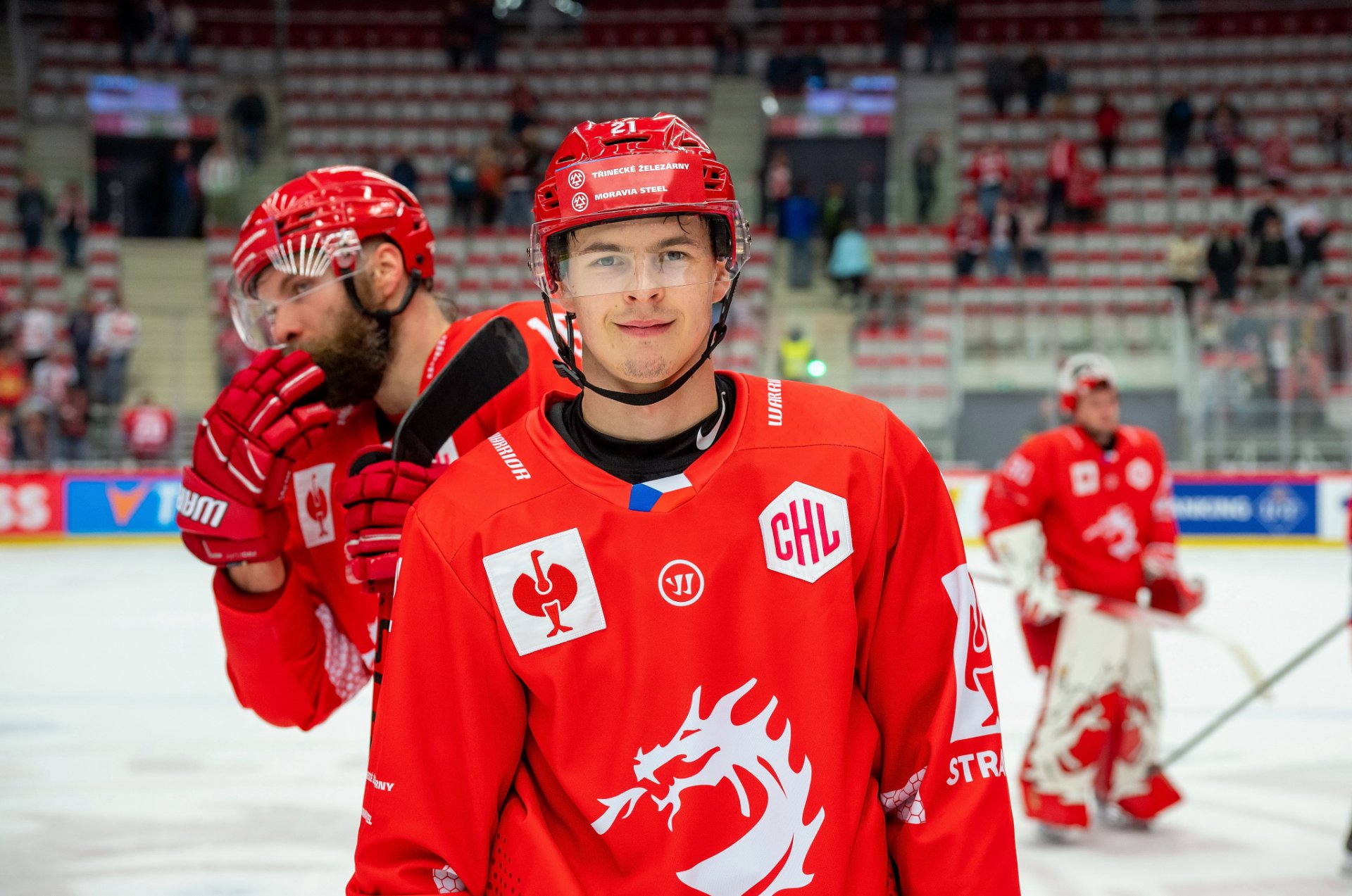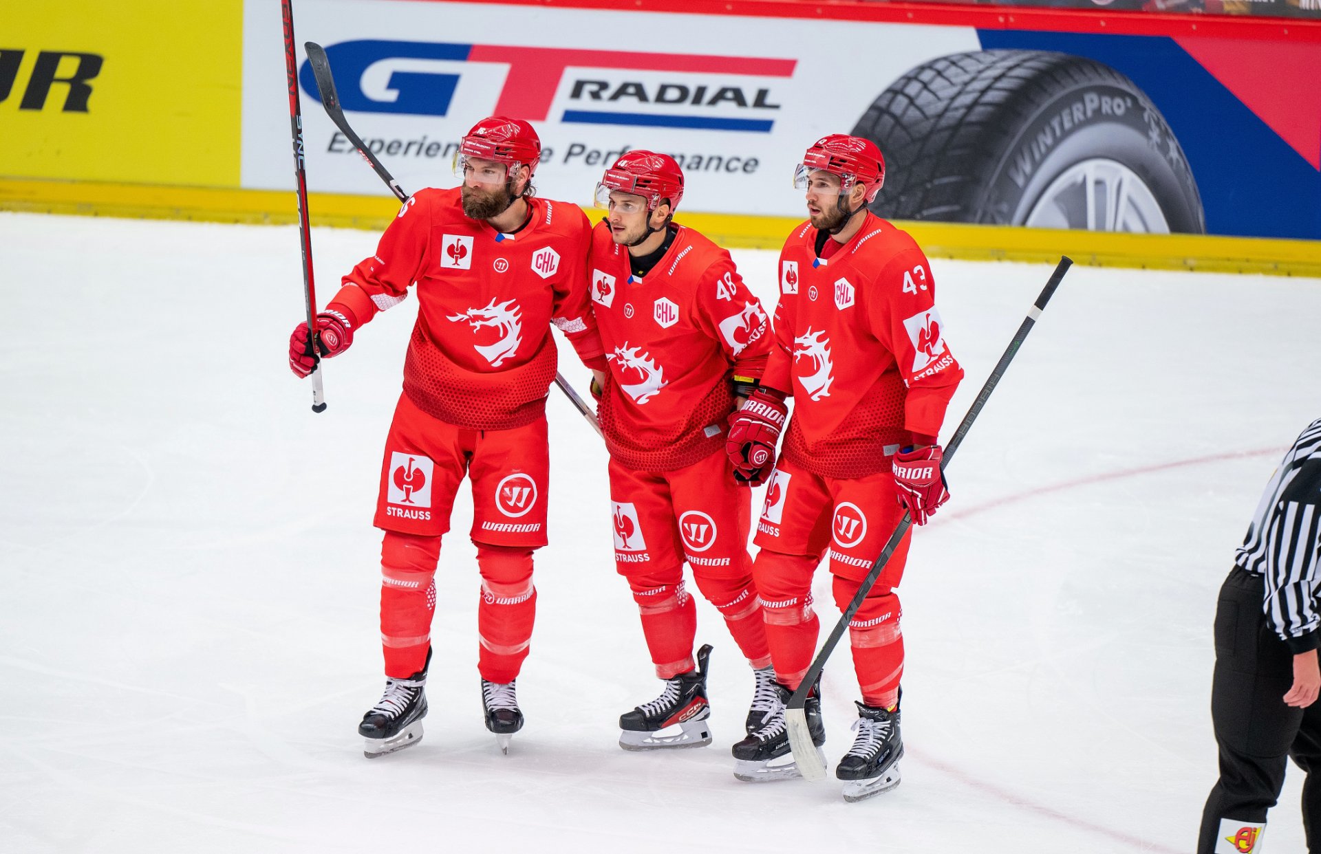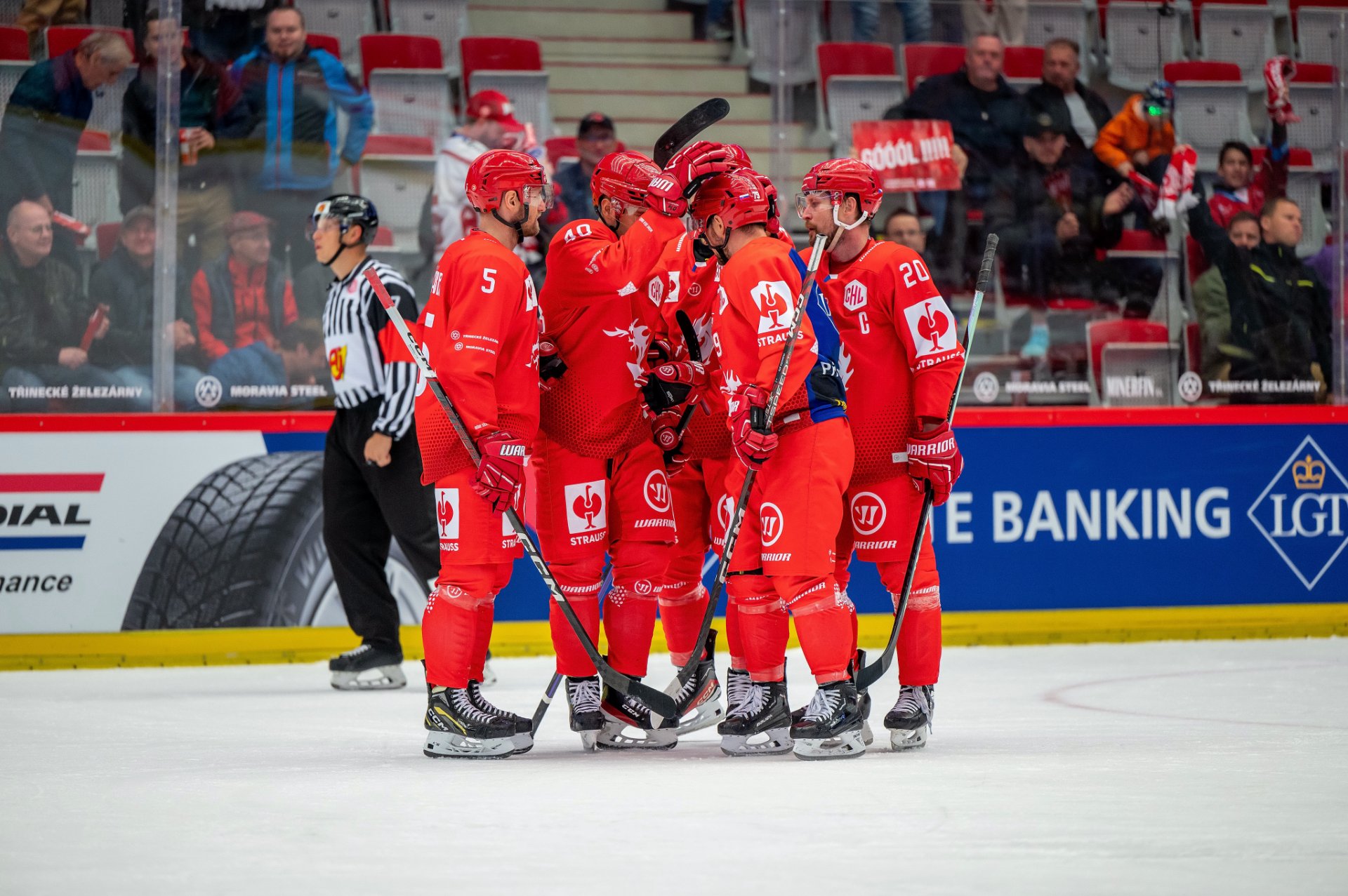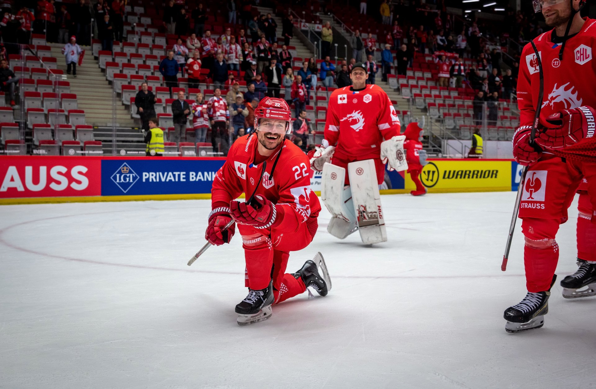 Kuba Jeřábek si plácá se spoluhráči