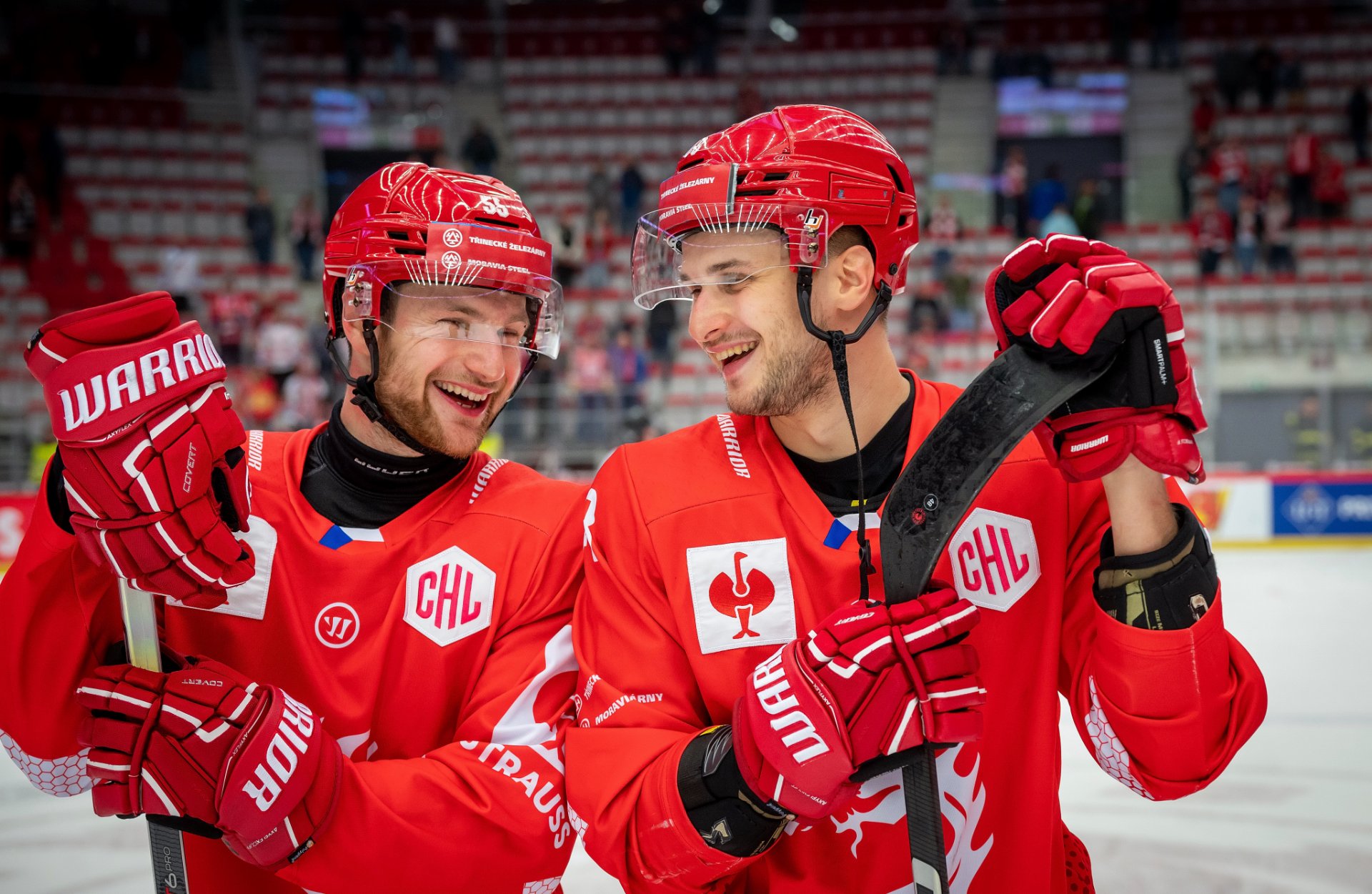 Trenér Zdeněk Moták si plácá s Milošem Romanem