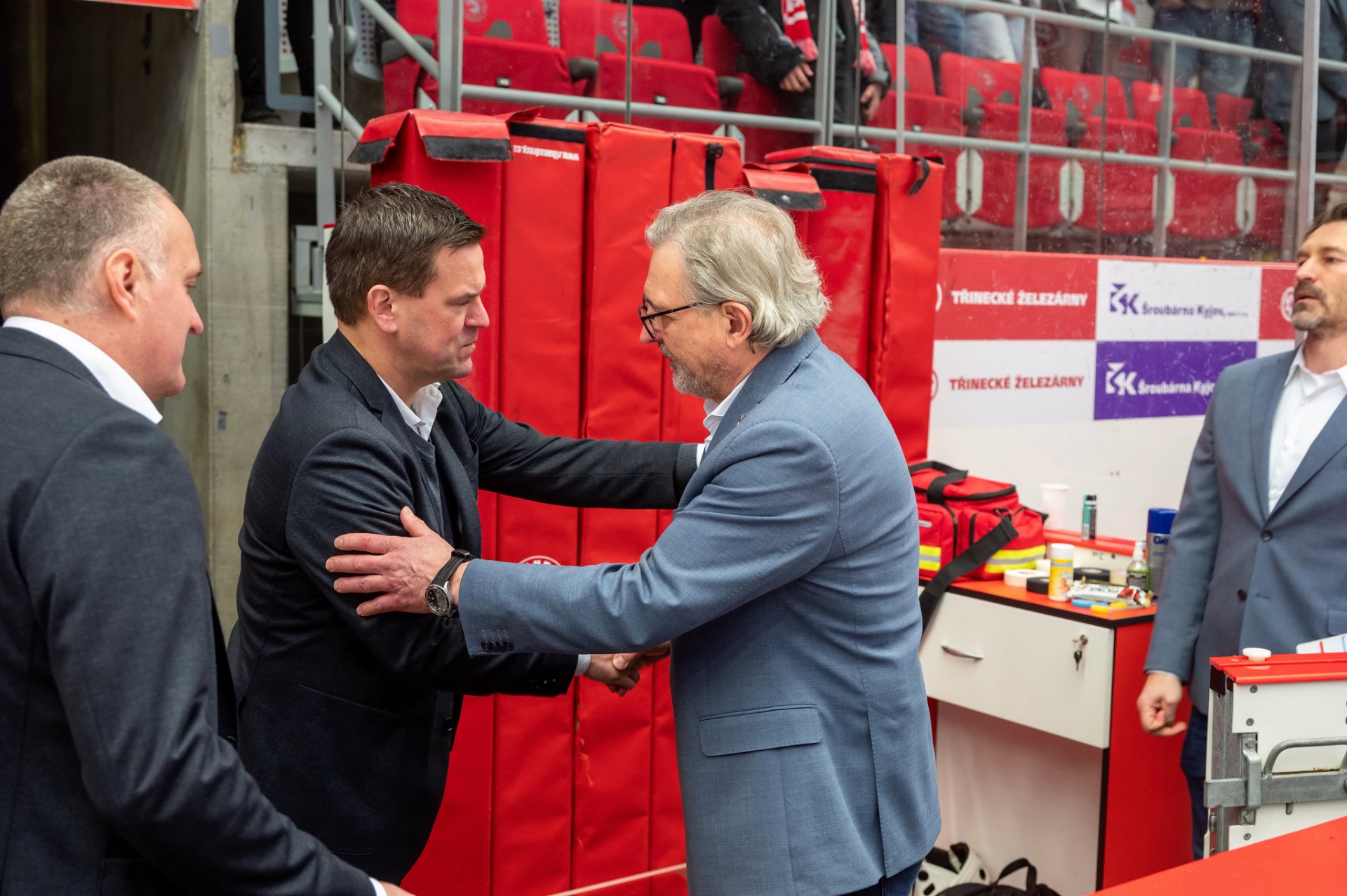 Vladimír Dravecký konzultuje nějakou situaci na ledě