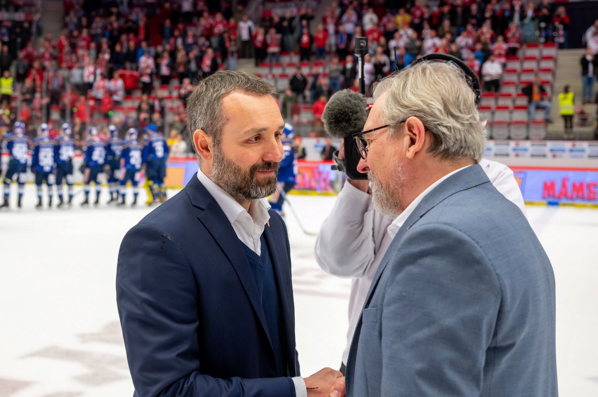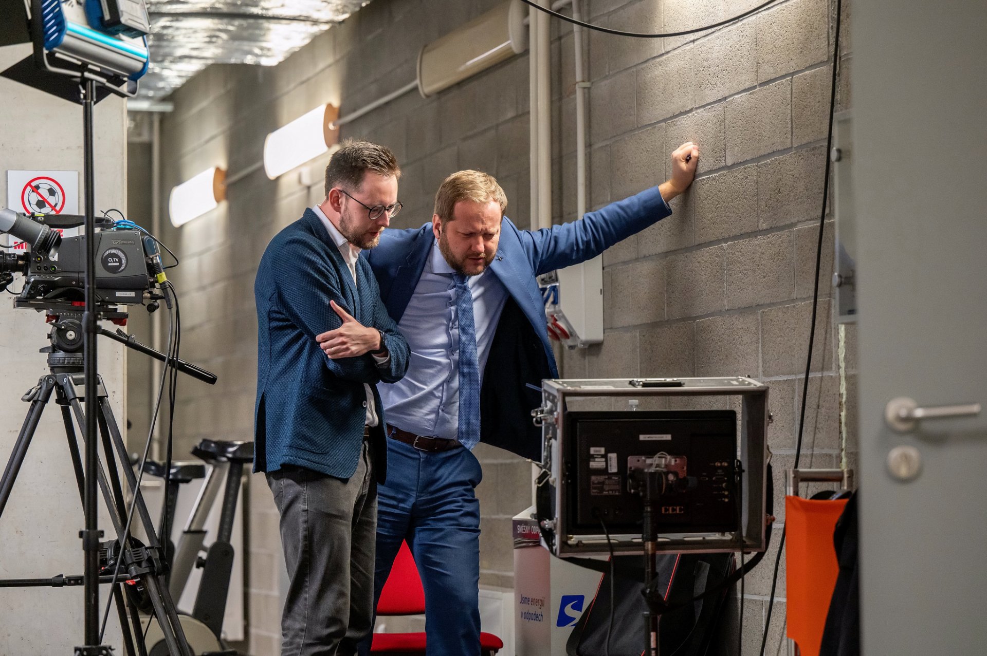 Tiskový mluvčí Ondřej Kuchař a redaktor O2 TV Jan Hrabal