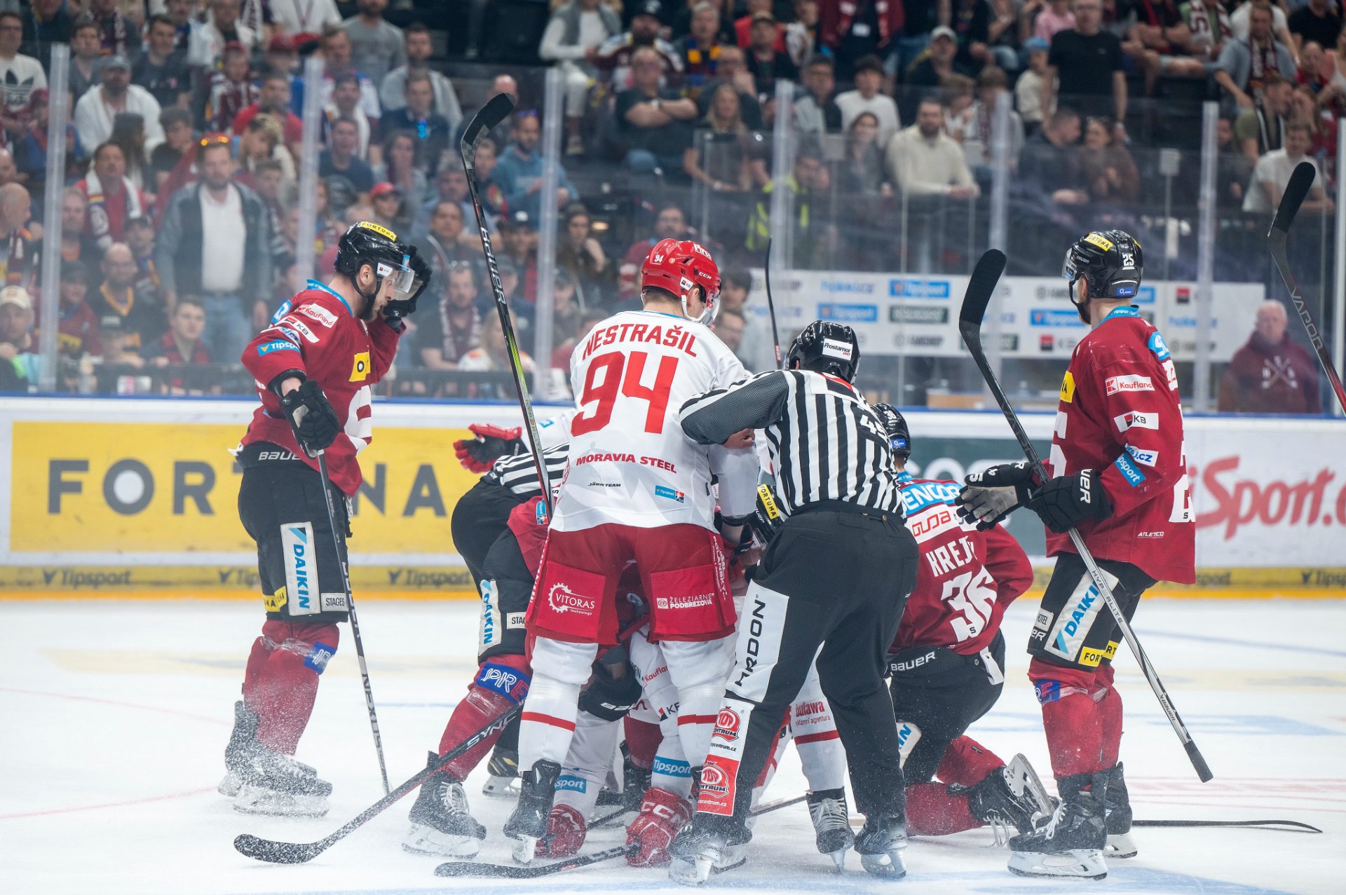 Trenér Zdeněk Moták v diskuzi s rozhodčím