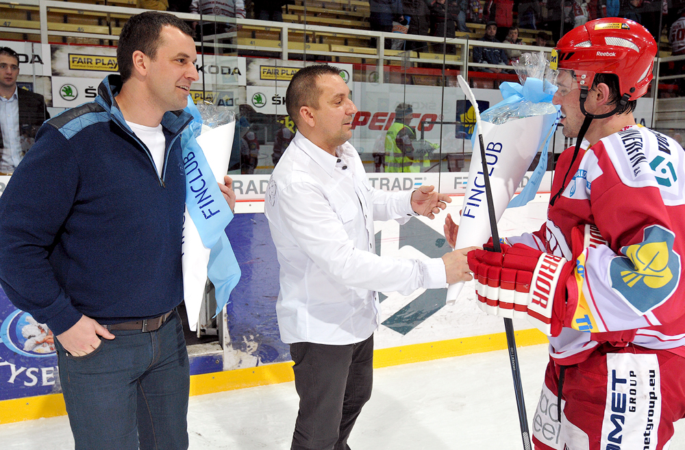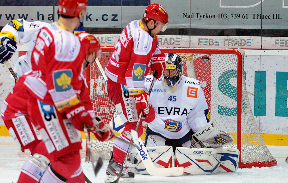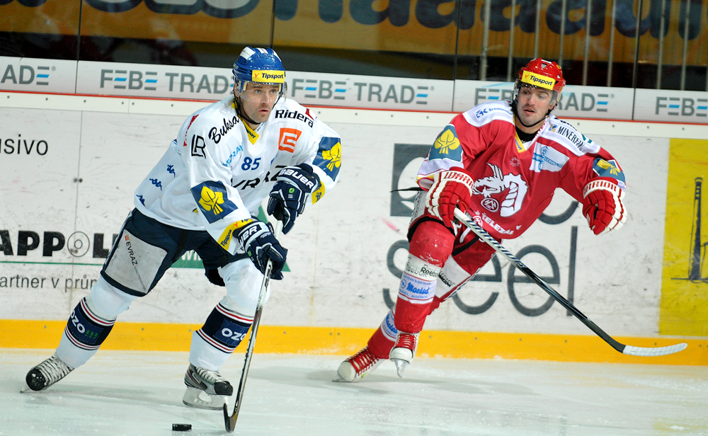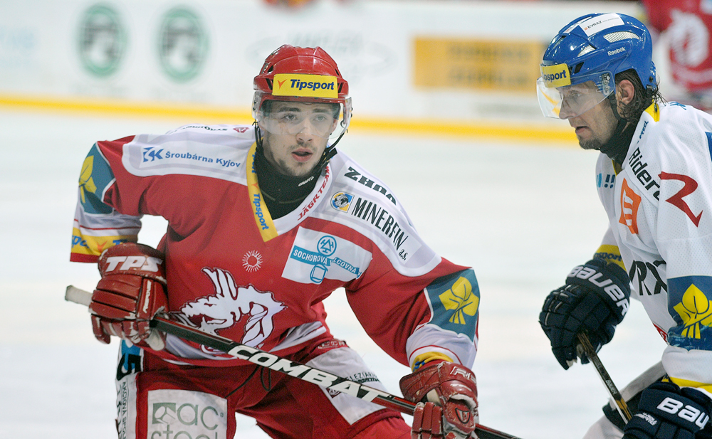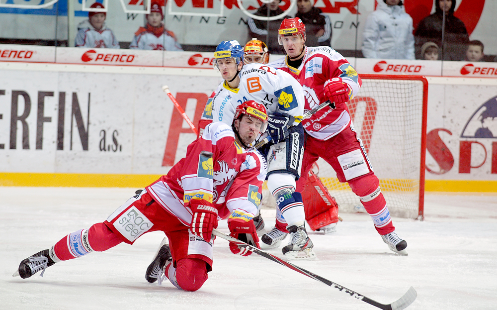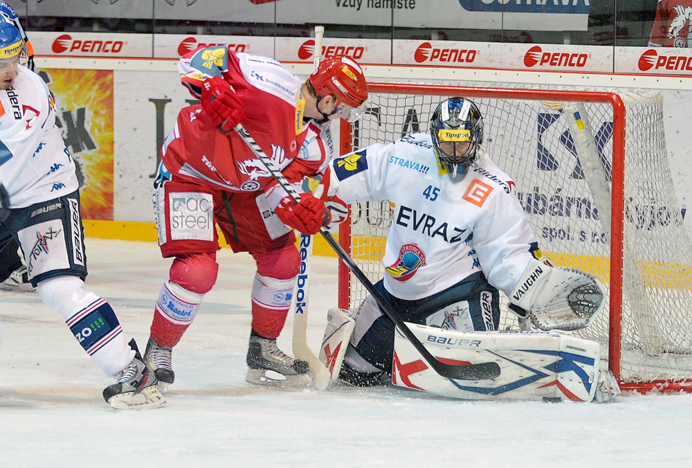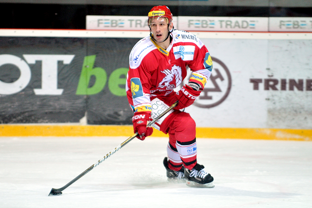 Jiří Polanský se snaží tečovat puk.