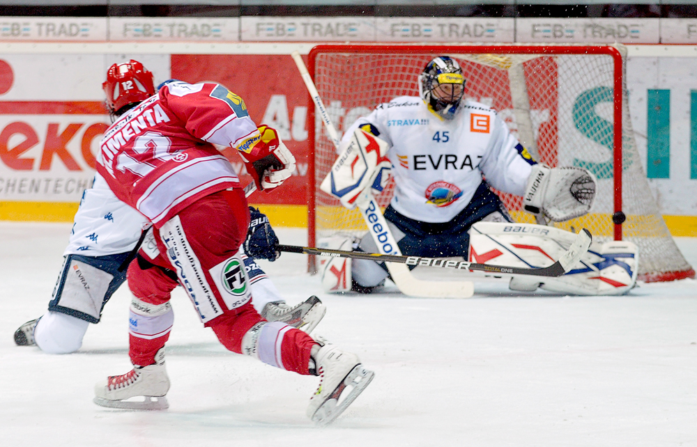Tomáš Klimenta trefuje tyčku.