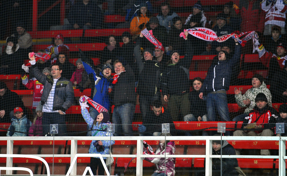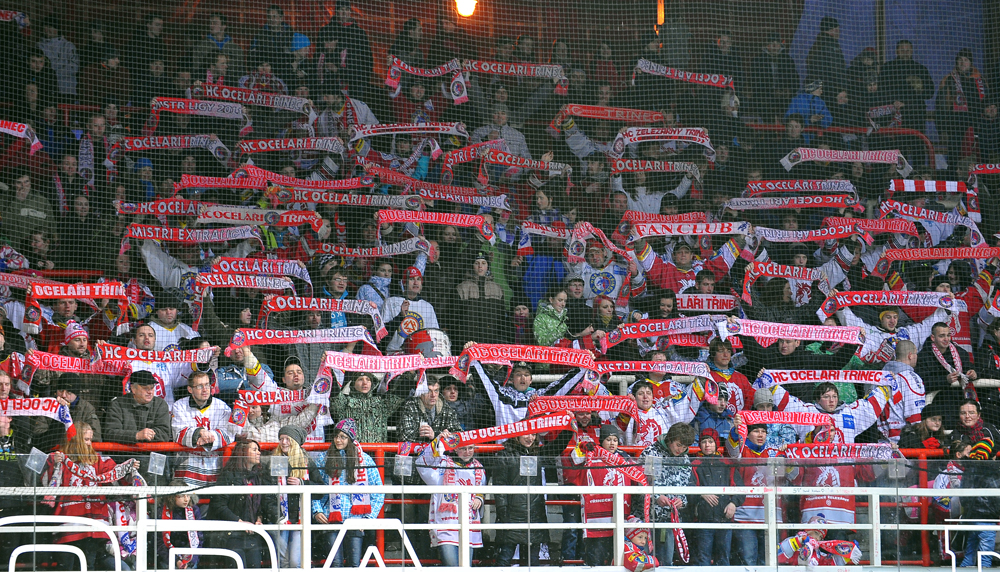 Gólová radost třineckých fanoušků.