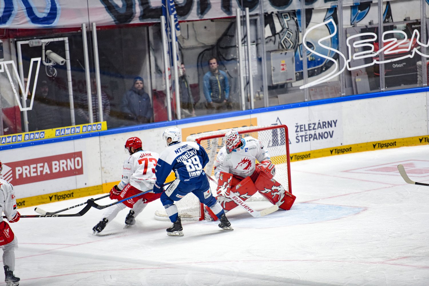 V závěru třetiny Kacetl vykryl nebezpečnou střelu Cingela, Třinečtí následně hráli v šesti, domácí ale první minutu přesilovky ve druhé dvacetiminutovce nevyužili, na startu poslední části k Teplému přisedl Čacho a Brno hrálo čtyřiatřicet vteřin v pěti proti třem. Oceláři oslabení přečkali, byť Zbořil z hrany brankoviště orazítkoval tyč. V šestačtyřicáté minutě pak hráči s drakem na prsou korigovali své manko, střelu Janka od modré mimo Postavův dosah tečoval Petr Sikora.