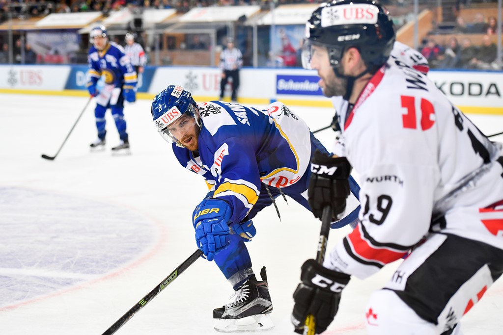 První třetina utkání mezi pořadatelským Davosem a reprezentací Kanady vytvořenou převážně z hráčů působících ve švýcarské soutěži nabídla dominantní představení hokejistů s javorovým listem na hrudi. Diváci v zaplněné a bouřící Vaillant Areně sledovali prakticky hru na jednu branku, domácí hráči neměli moc mezihry ve svůj prospěch a brankář Fucale v kanadské brance nečelil mnoha výrazným příležitostem Davosu. Kanadě k výrazné převaze, kterou zdokumentovala i 17 střelami na branku Lindbäcka, pomohly i tři přesilové hry. Jediný gól první části hry vstřelil Zach Boychuk. Puk šel do branky Davosu od Boychukovy brusle, gól byl potvrzen až po prozkoumání videozáznamu. Kanada vstřelila ještě jednu branku – ve 13. minutě střelou švihem využili kanadští hokejisté přesilovku po sedmi sekundách od vyloučení Du Boise. Gól nemohl být uznán, poněvadž zlomek sekundy před tím, než kanadský hokejista vystřelil, vykopl při přesunu branku z pantů domácí brankář Lindbäck.