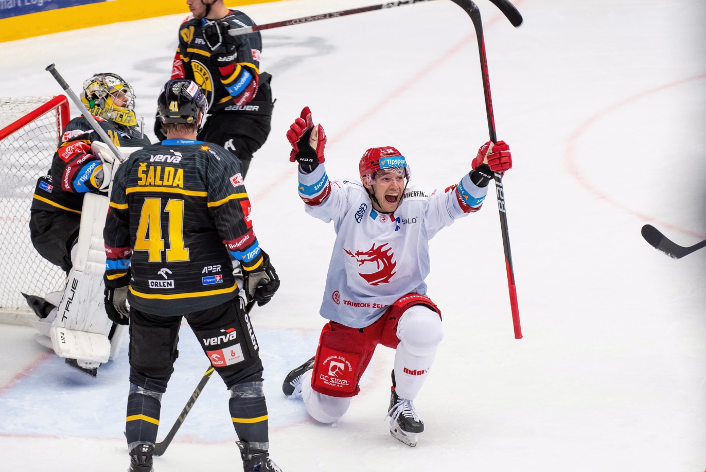 Úvod třetí třetiny patřil hostům, kteří hýřili aktivitou a hledali šanci, jak ještě zápas zdramatizovat. Přestože ale hráči Vervy častěji pobývali v úvodních minutách v útočném pásmu, domácí si hlídali, aby zůstali v jejich obranné zóně pod kontrolou – zkrátka žádné větší šance v této pasáži utkání nevznikaly. Oceláři mohli po vyloučení Zemana zápas definitivně dostat pod svou kontrolu, ale početní převaha se jim moc nepovedla, byť ve velké šanci na slotu promáchl střelecký smolař úvodu sezóny Hudáček. Třinečtí pokračovali v tlaku i po návratu vyloučeného hráče Litvínova na led a byli odměněni. Voženílek nikým nehlídán objel branku a poslal puk před úplně odkrytou klec, kde měl Libor Hudáček už snadnou práci poslat kotouč za brankovou čáru.
