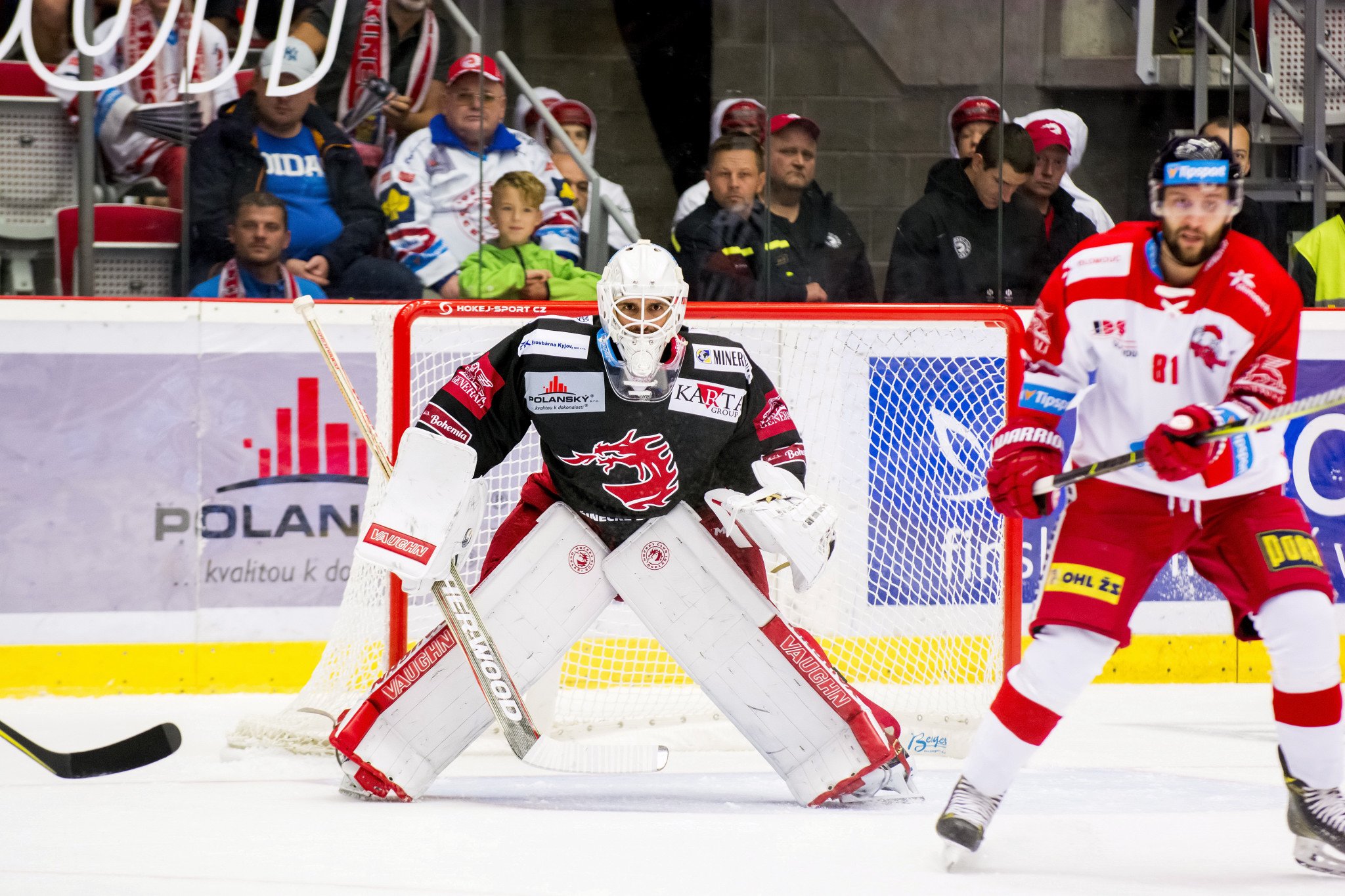 Úvodní šance prvního domácího utkání Ocelářů na sebe nenechala dlouho čekat. Již ve druhé minutě se před Konrádem objevil Michal Kovařčík, rychlou akci ale gólově nezakončil. Hosté následně měli šanci otevřít skóre v přesilové hře, z vyloučení Hrni ale nevytěžili nic. Stejně jako Oceláři z vyloučení Tomečka, byť Marcinkovo ťuknutí do puku z prostoru před brankovištěm trefilo pravou Konrádovu tyč. Výsledek první třetiny tak určila pasáž zhruba dvou minut po polovině úvodního dějství. Nejprve si sjel z pozice pravého beka do prostoru mezi brankovištěm a kruhem Lukáš Krajíček, kterého tam našel perfektní přihrávkou Roberts Bukarts. Následně pálil od modré Gernát a David Cienciala do trajektorie puku sáhl a navýšil třinecké vedení. Šance měli ale i hostující kohouti, ty největší koncentrovali do devatenácté minuty. To nejprve Laš střílel z předbrankového prostoru, následně Staněk z vrcholu kruhu vyslal svižnou ránu zápěstím. V obou situacích měl navrch domácí gólman Hamerlík.