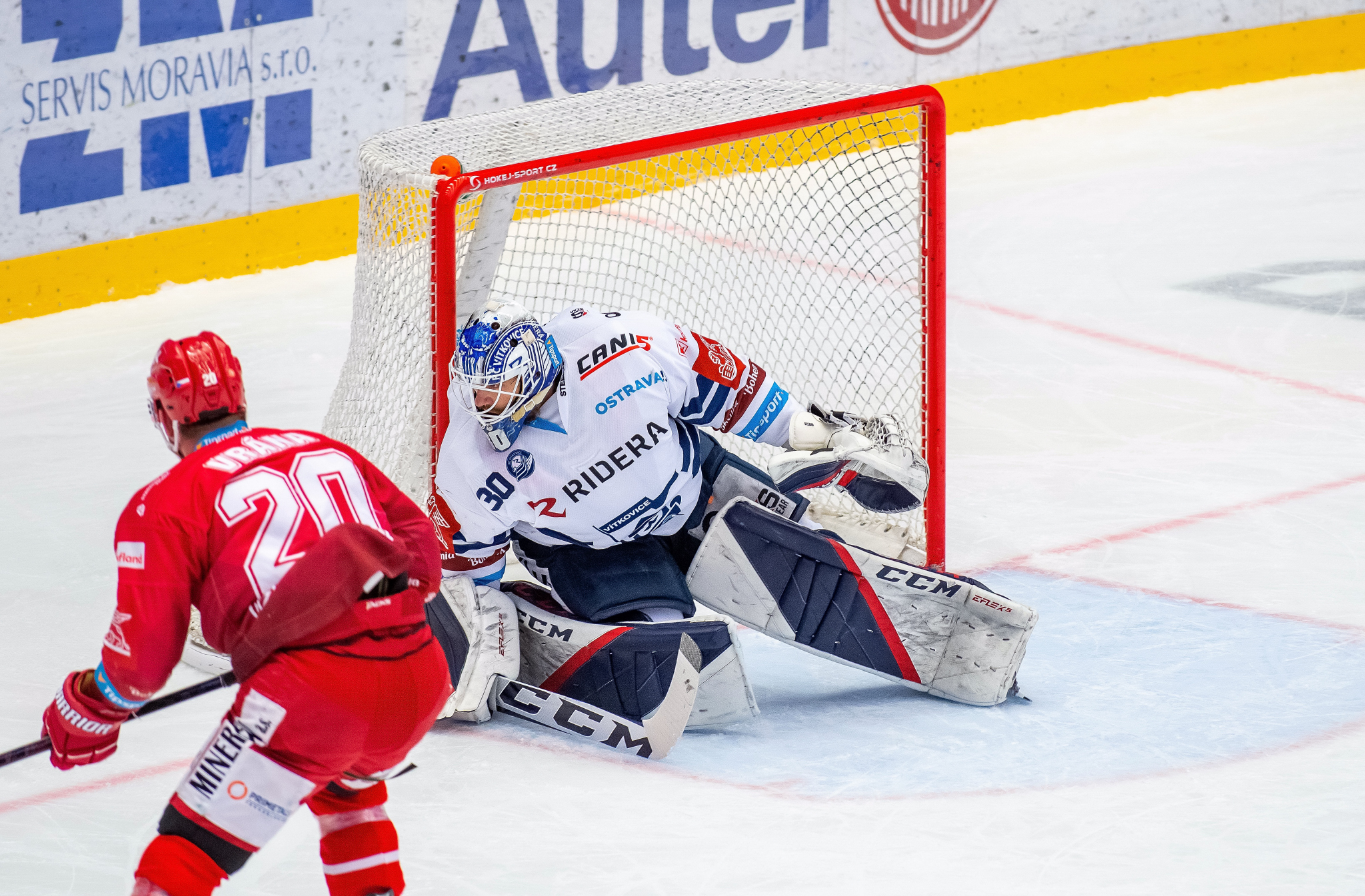 Velkou šanci snížit tříbrankové vedení měl třináct minut před koncem druhé třetiny Roman, který využil přečíslení, jež si v útočném pásmu vytvořila jeho formace, a místo přihrávky do strany na Hrehorčáka volil střelu, kterou Stezka pokryl. Hosté pak měli dvě situace, v nichž mohli své vedení navýšit. Nejprve hráli přesilovku po vyloučení Kundrátka a zhruba o čtyři minuty později ještě po trestu pro hráčskou lavici za špatné střídání. Vítkovice sehrály podstatně lépe druhou početní výhodu, ale obě skončily stejně – jako nevyužité. Jediným střelcem druhé třetiny tak zůstal přes výraznou střeleckou převahu domácích hostující Bondra.