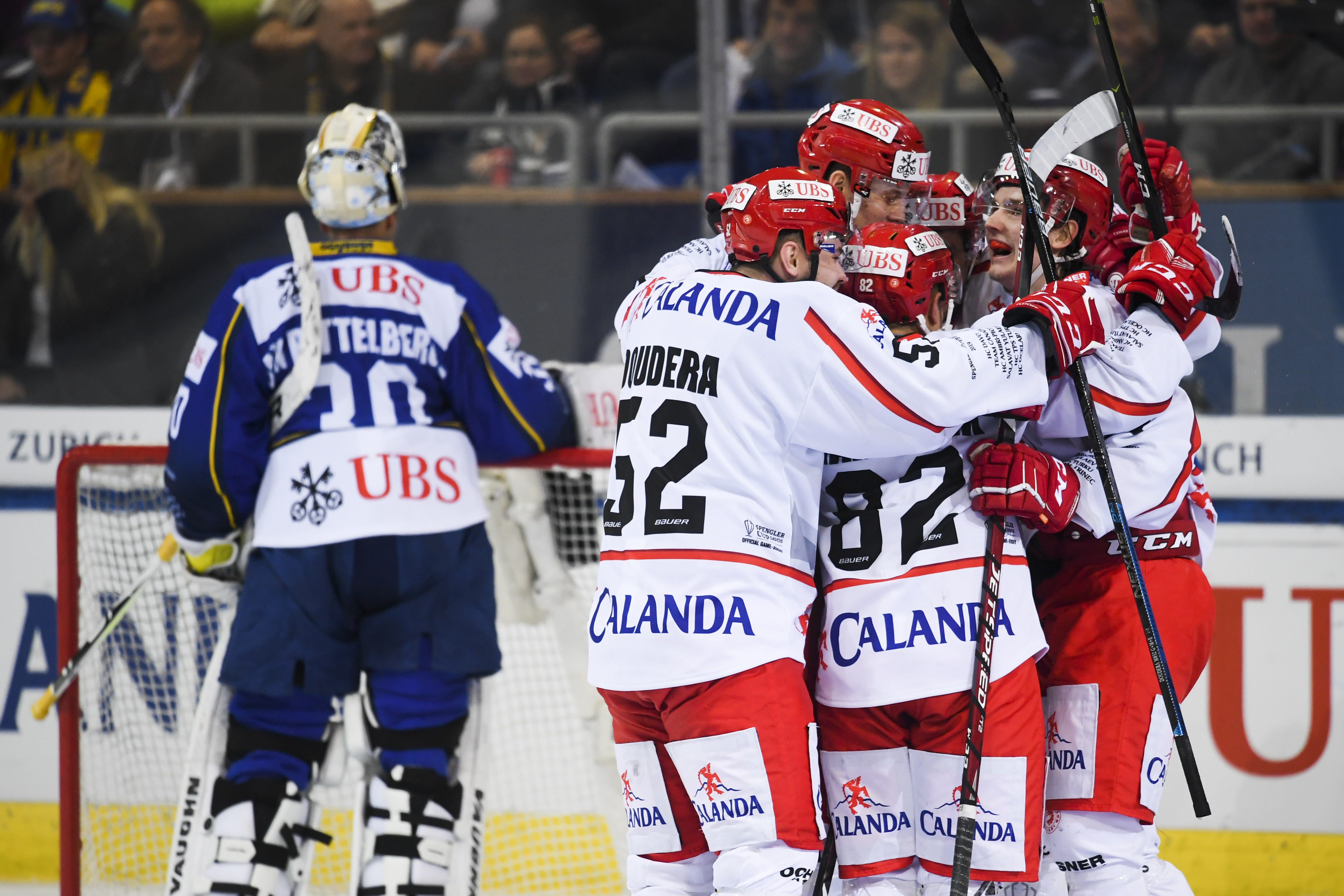 Pro druhé střetnutí v rámci slavného Spengler Cupu dostal důvěru v třinecké brance Jakub Štěpánek. Zkušený světoběžník musel v úvodu řešit nájezd domácího veterána Ambühla, který se snažil prosadit dlouhou kličkou do bekhendu, ale třinecký dlouhán kraloval. Postupem času se stále více osmělovali také hostující borci. Nejprve to zkusil Martynek, po něm pořádně prověřil domácího gólmana van Pottelbergheho střelou z mezikruží Gernát, ale ani jemu nebylo přáno.