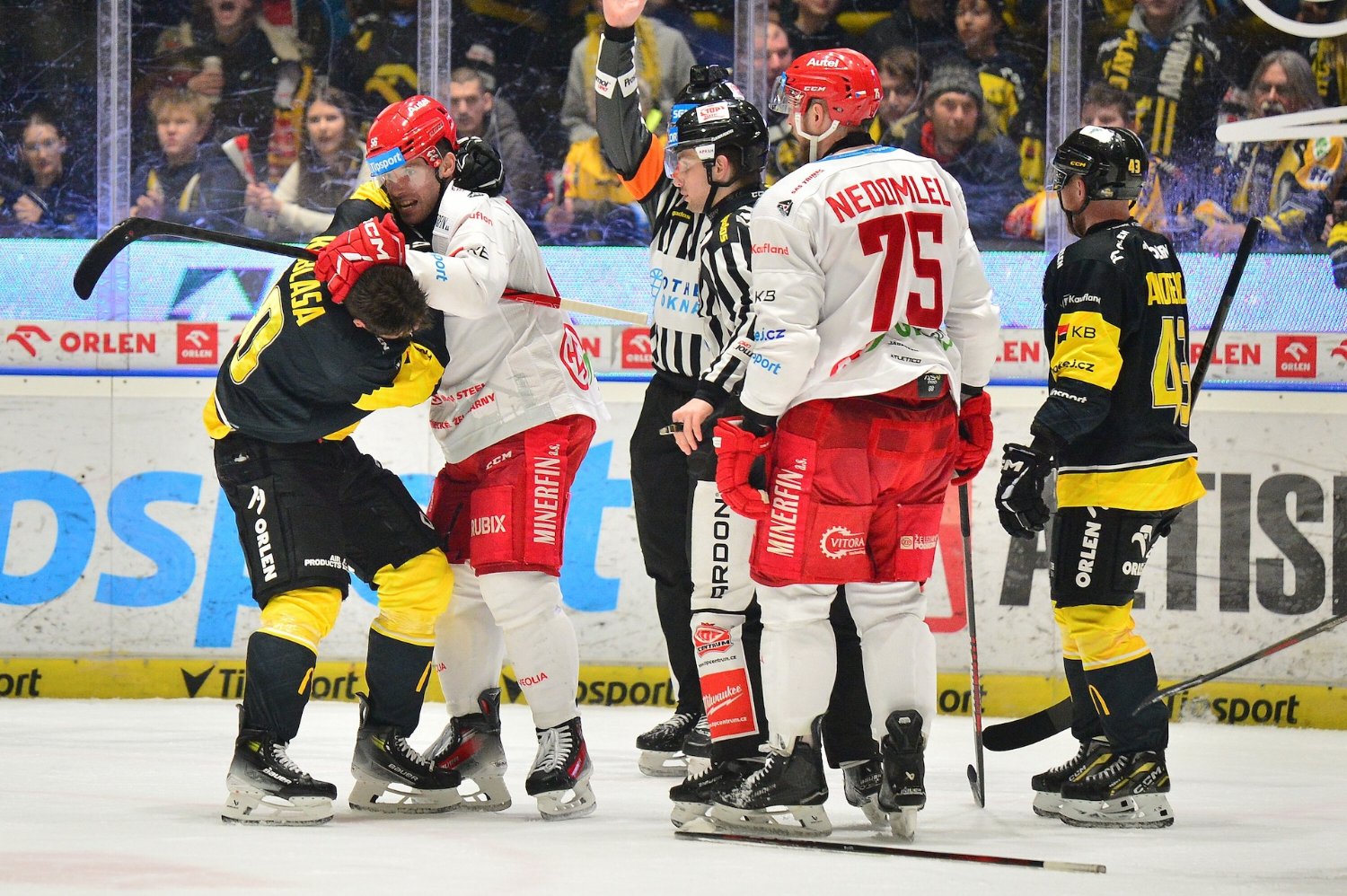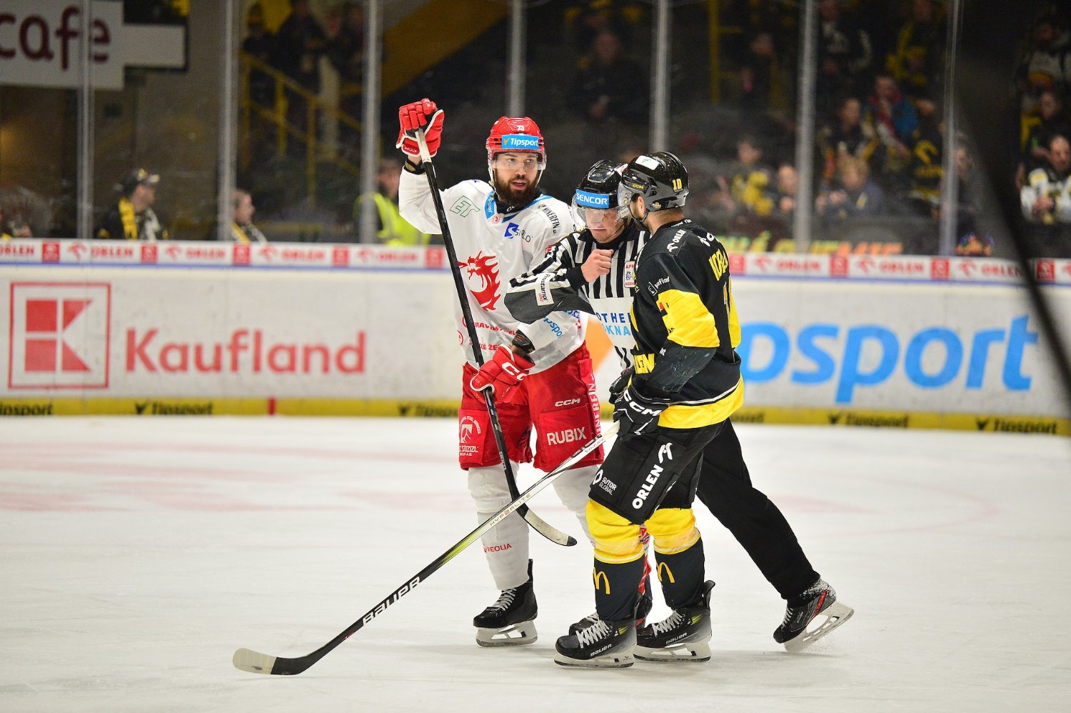 Zdeněk Moták (HC Oceláři Třinec): "Prohra se kouše velice těžko. Myslím, že jsme si to pokazili častými oslabeními, to nám vzalo sílu na střílení branek. Vyloučeni byli hráči, kteří toho mají hodně za sebou, jsou zkušení, a sami ví, že se tohle nemůže stávat. Byly to zbytečné fauly, které nás oslabily. To nás dostávalo dolů. Máme tady svého videokouče, ten řekl, že to byl ofsajd, tak jsme si výzvu vzali. Pořád musíte jít dopředu, nejde, abychom byli zkroušení. Po neuznané brance se hrálo ještě pět minut, my ale odcházíme poraženi. Stav Kuby Jeřábka neznám, ještě jsem s ním nemluvil."