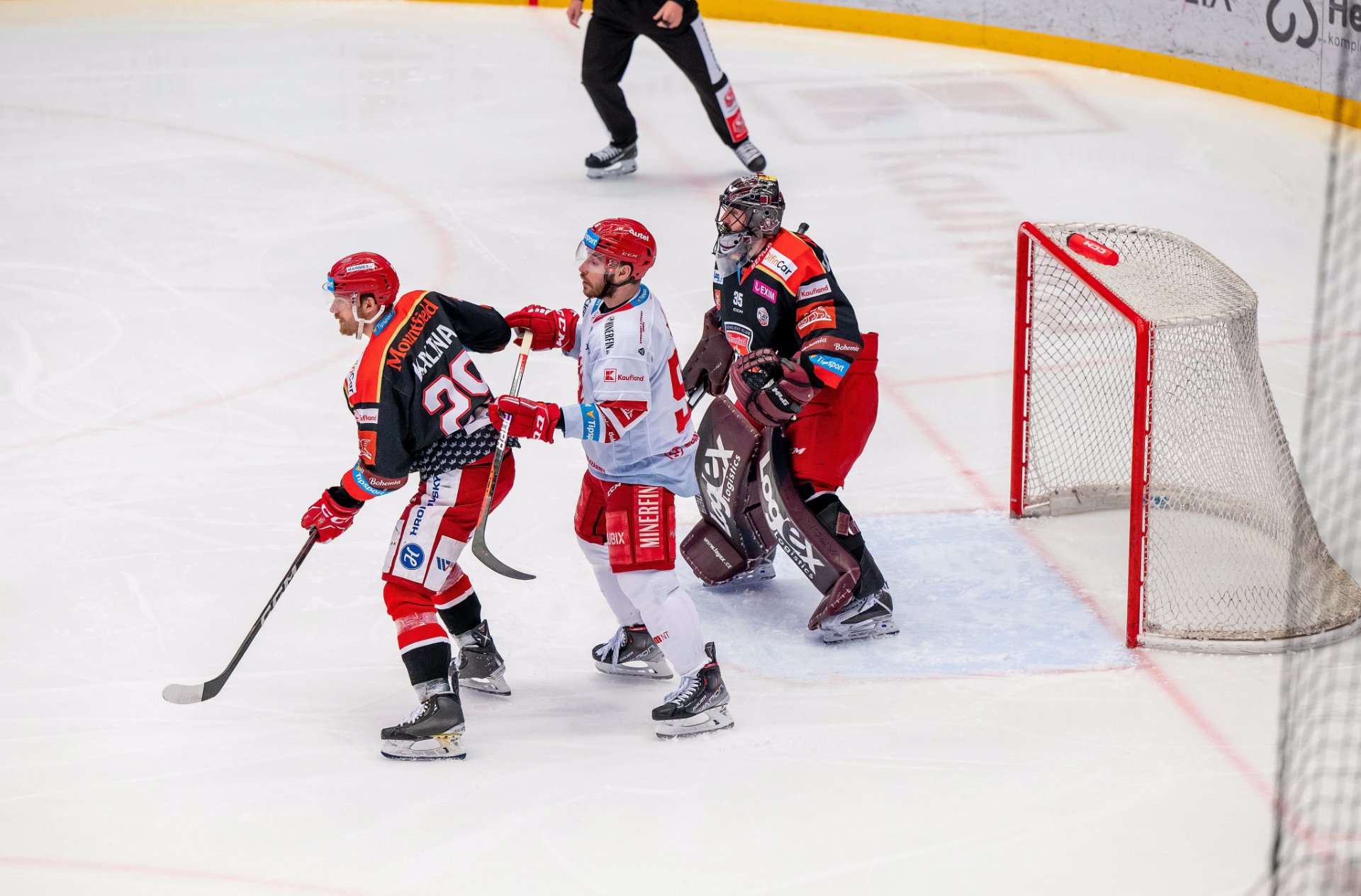 Tomáš Martinec (Mountfield HK): „My si moc přáli vrátit sérii ještě do Hradce. Už kvůli našim skvělým fanouškům. A já můžu jen poděkovat hráčům, že od prvního střídání znova bojovali a rvali se o výsledek. Samozřejmě nám dával šanci vyhrát zápas výborný Matěj Machovský v brance. Myslím, že jsme zlepšili hru v předbrankovém prostoru, konečně nám to přineslo ovoce a první bod v sérii. Věřím, že jsme konečně odčarovali Kacetlovu neprůstřelnost. A pokusíme se teď získat doma další bod.“
