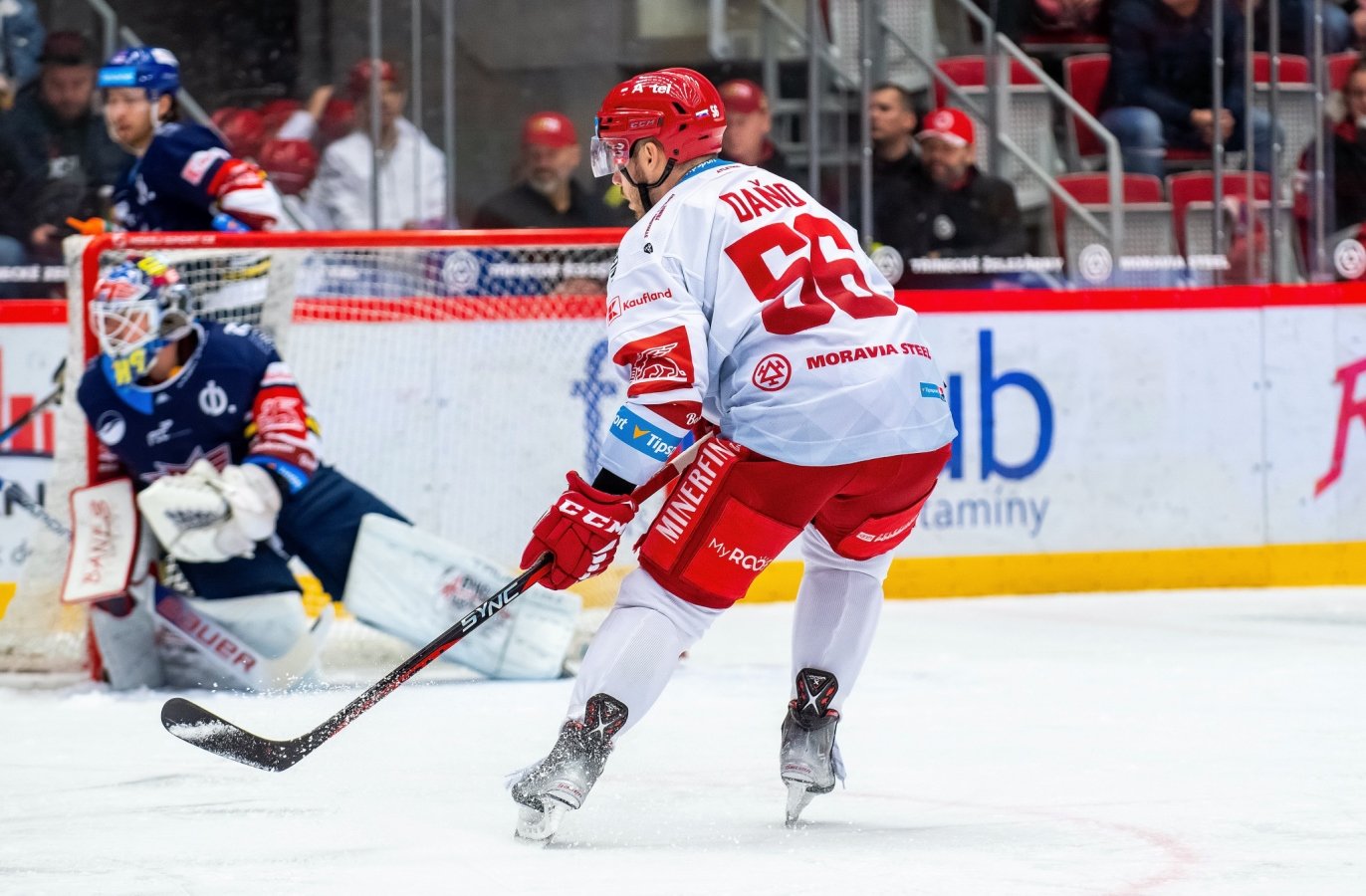 Veseleji bylo pro domácí po půlce zápasu. V neutrální zóně rychlým přístupem ke Štencelovi získal puk Růžička, předal jej do jízdy Marku Daňovi. Třinecké křídlo dostalo od hostujících bránících hráčů spoustu času i prostoru, a tak si Daňo najel na vrchol pravého kruhu do střelecké pozice a odtud prostřelil Hrachovinu. Domácí byli ve zbytku prostřední hrací doby lepším týmem na ledě, při chuti byl autor dvou gólových přihrávek Růžička, který se snažil se svými spoluhráči narýsovat ještě nějakou gólovku. Nakonec se mu to v této pasáži zápasu nepovedlo, branku nevstřelil ani nikdo jiný na ledě, ale dvě dobré šance ještě domácí měli. Nejprve si vybruslil s pukem na holi na osu kluziště Kurovský a jeho svižný pokus Hrachovina vyrazil. V závěrečné minutě pak šikovně potáhl kotouč na osu Roman a dal doprava Hrehorčákovi, který z ideální pozice nechal vyniknout hostujícího brankáře.