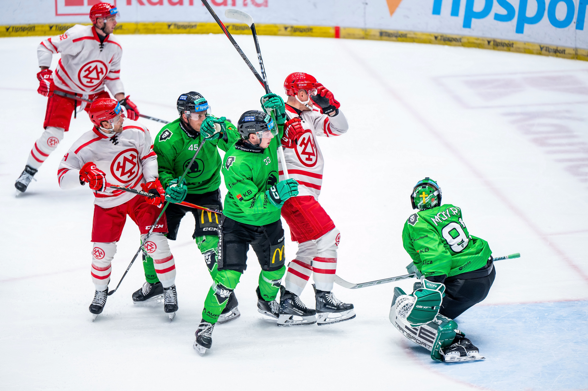 Záhy nato byl Kundrátek na ose zablokován a následně po Nestrašilově ztrátě se tlačil před Galvase do zakončení Lakatoš. Třinecký obránce mu ale zakončení znepříjemnil tak, že neproměnil tuto šanci. Zhruba tři minuty před koncem si vzali hosté oddechový čas a zkusili hru v šesti bez brankáře. Několik bloků si připsal obětavý Hrehorčák, k němu se přidali i další a když už něco prošlo přes obranu, v brance stál vynikající Mazanec. Osm vteřin se přece jen hosté po šťastném odrazu dočkali. Střelcem hostující branky byl označen David Gríger. Ve zbylých osmi vteřinách už Třinec zkušeně zahrál buly a dovedl utkání do vítězného konce. Oceláři zvítězili nad Mladou Boleslaví 2:1.