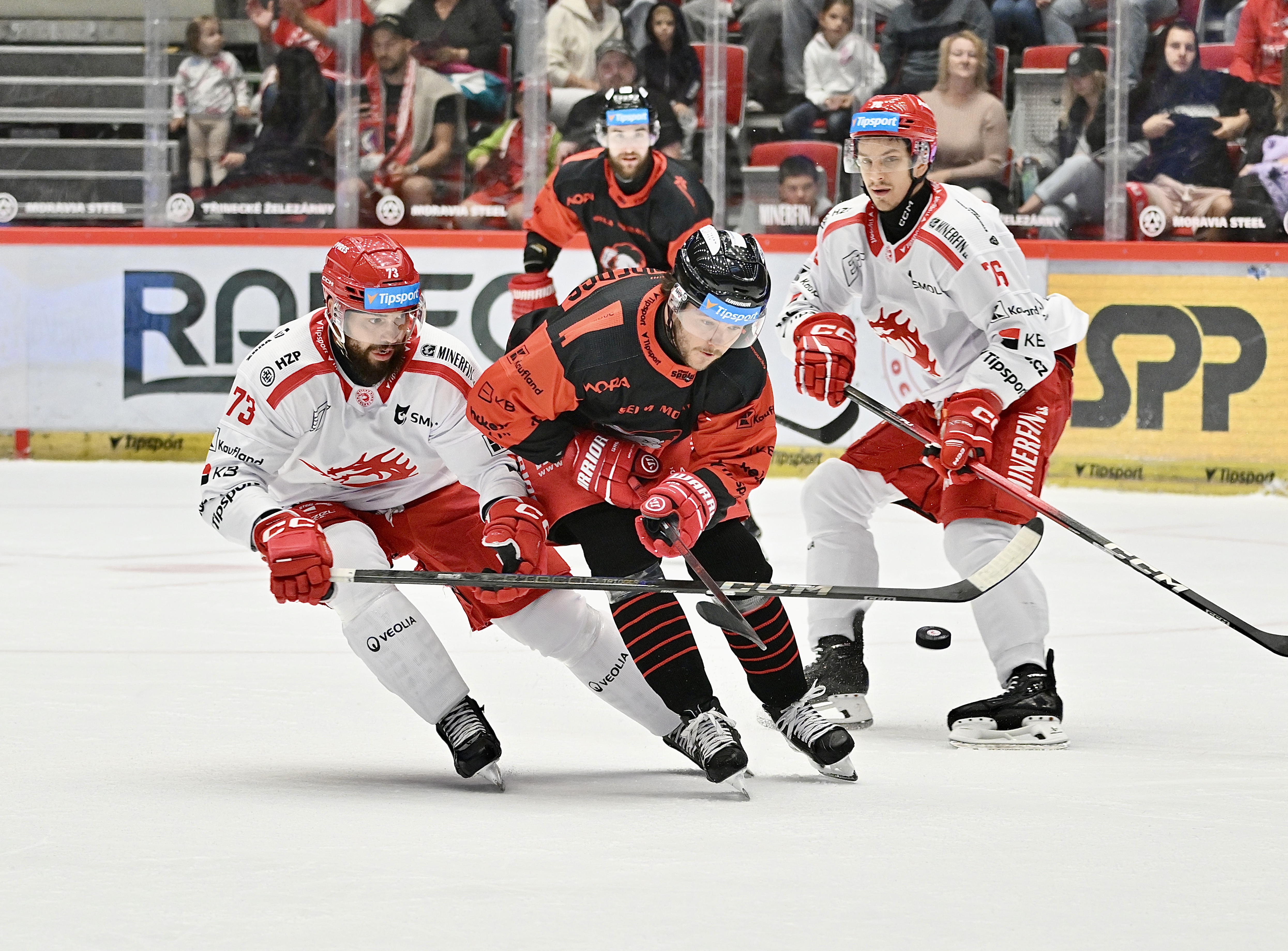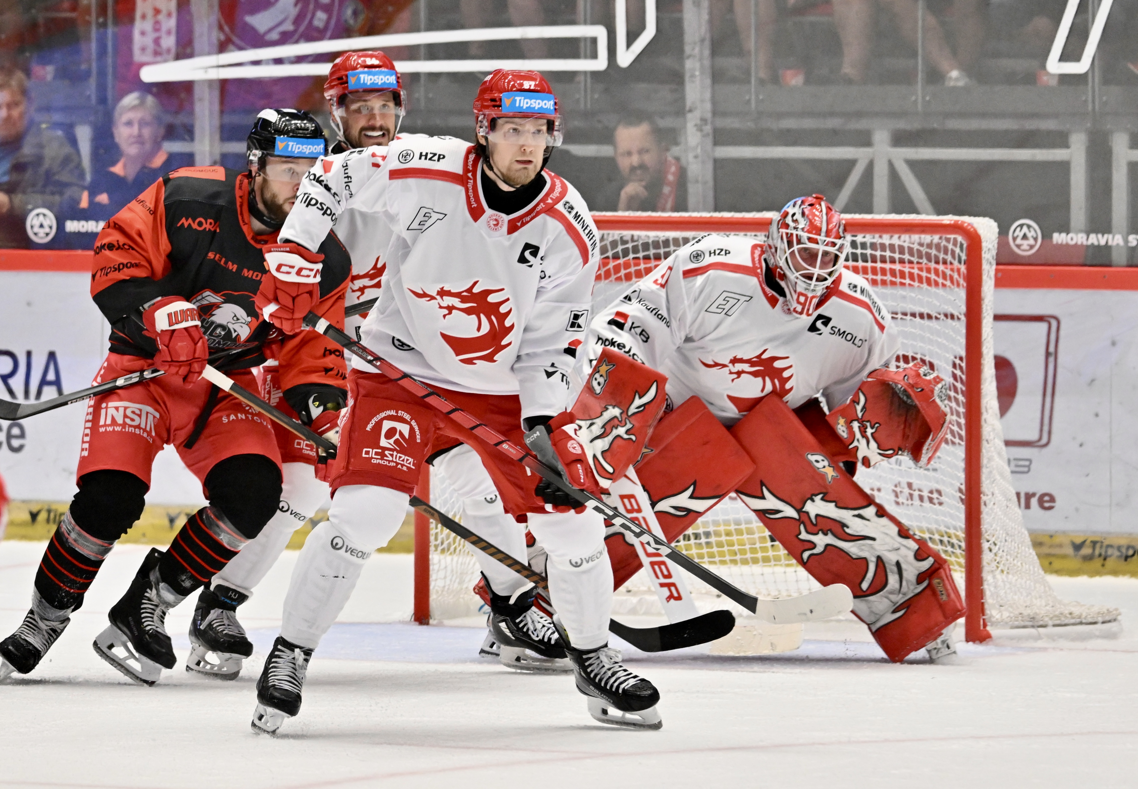Oceláři odstartovali novou sezónu domácím zápasem proti Olomouci. Od té doby, co je na lavičce Zdeněk Moták, Třinec ještě nevyhrál úvodní duel sezóny. Tuto nelichotivou bilanci chtěli Třinečtí přerušit. K tomu mohl přispět i fakt, že marodka Třince je až na jedno jméno zcela vyčištěná. Ocelářům schází jen dlouhodobě zraněný Petr Sikora a mezi obránci scházel pouze Patrik Koch. Třineckou branku střežil Ondřej Kacetl.