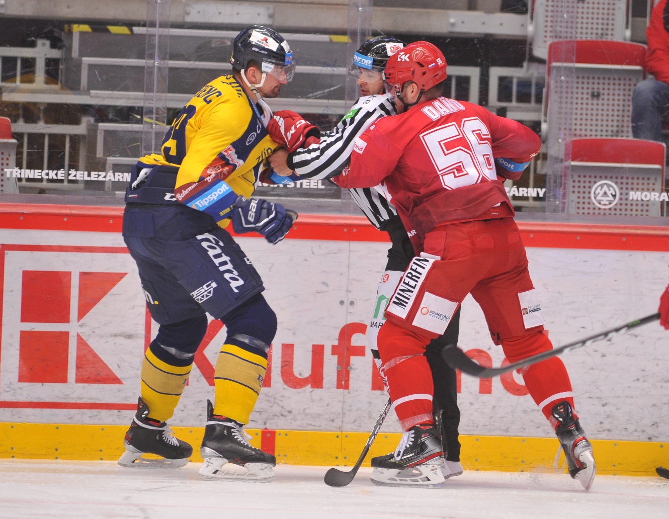 V závěru první třetiny byl vyloučen dvojnásobný střelec úvodních dvaceti minut Chmielewski. Hosté v krátké pasáži na konci první třetiny neskórovali, zbytek trestu si tak přenesli do prostřední hrací doby. Oceláři se přesilovce Zlína ubránili, ale na konci šesté minuty to už vypadalo, že je situace mimo jejich možnosti řešení. Po práci Radka Veselého před Mazancem se dostal puk ze strany před odkrytou klec na Oscara Flynna a zdálo se, že hbitý zlínský útočník puk pošle po zemi do prázdné branky. Nestalo se tak, pravděpodobně aktivita Kundrátka, který nadzvedl hostujícímu hráči hůl, byla v situaci klíčová.