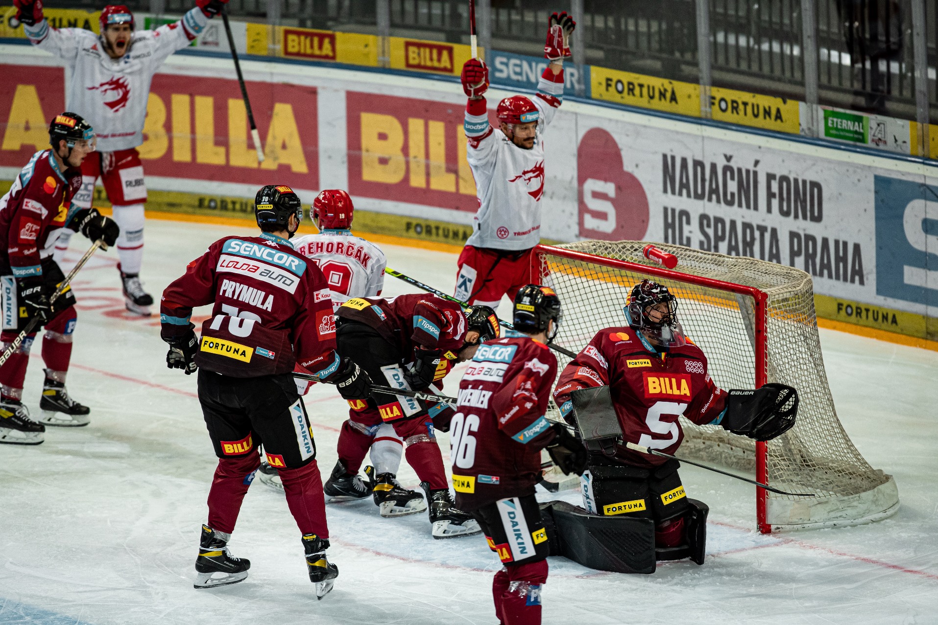 Další gól do sbírky mohla třinecká sedmadvacítka přidat sedm minut před koncem, kdy se po chybě Sparty v útočném pásmu dostal k nájezdu z pravé strany na Saláka, ale v klíčovém okamžiku nechal puk za sebou. Sparťané pak ještě zápas zdramatizovali poté, co po čtyřiceti sekundách využili Kofroňovo vyloučení – střelcem branky byl Michal Řepík. Do konce třetí třetiny zbývalo pět a půl minuty. O dvě minuty později Sparta odvolala Saláka na hráčskou lavici a zkusila to v šesti. Faulem na Kundrátkovi se ale provinil Horák. Oceláři svou druhou přesilovku v utkání sice nevyužili, ale odehráli dvě minuty daleko od své branky a domácím pak už zbylo málo času se zápasem cokoliv udělat. Navíc půlminutu před koncem zápasu poslal osmý puk do odkryté sparťanské klece Patrik Hrehorčák. Konečný výsledek - Sparta 5, Oceláři 8!