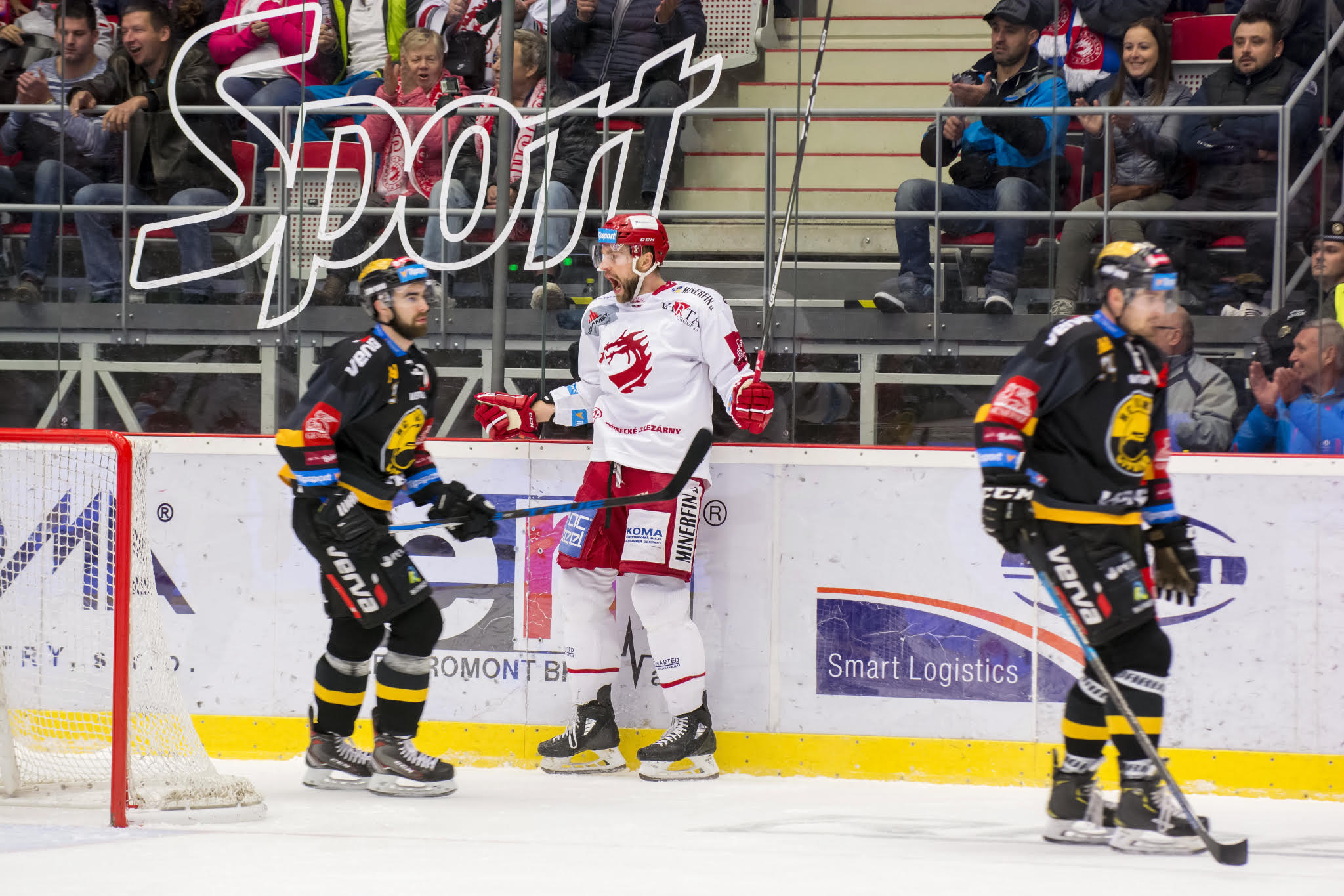 Třetiny: 1:0, 1:1, 2:1  Branky a nahrávky: 13. Marcinko, 36. Marcinko (Hrňa), 49. Adamský (Roberts Bukarts, Roth), 54. Chmielewski (O. Kovařčík) – 29. Porseland (F. Lukeš), 49. Hunkes (Baránek, M. Hanzl). Rozhodčí: Šír, Kubičík – Gebauer, V. Hanzlík. Vyloučení: 1:2. Využití: 0:1. V oslabení: 0:0. Diváci: 5 017. Střely na branku: 28:30. Střely mimo: 12:10. Zblokované střely: 14:14. Hity: 10:7. Vhazování: 28:35. Průběh utkání: 1:0, 1:1, 2:1, 2:2, 4:2.