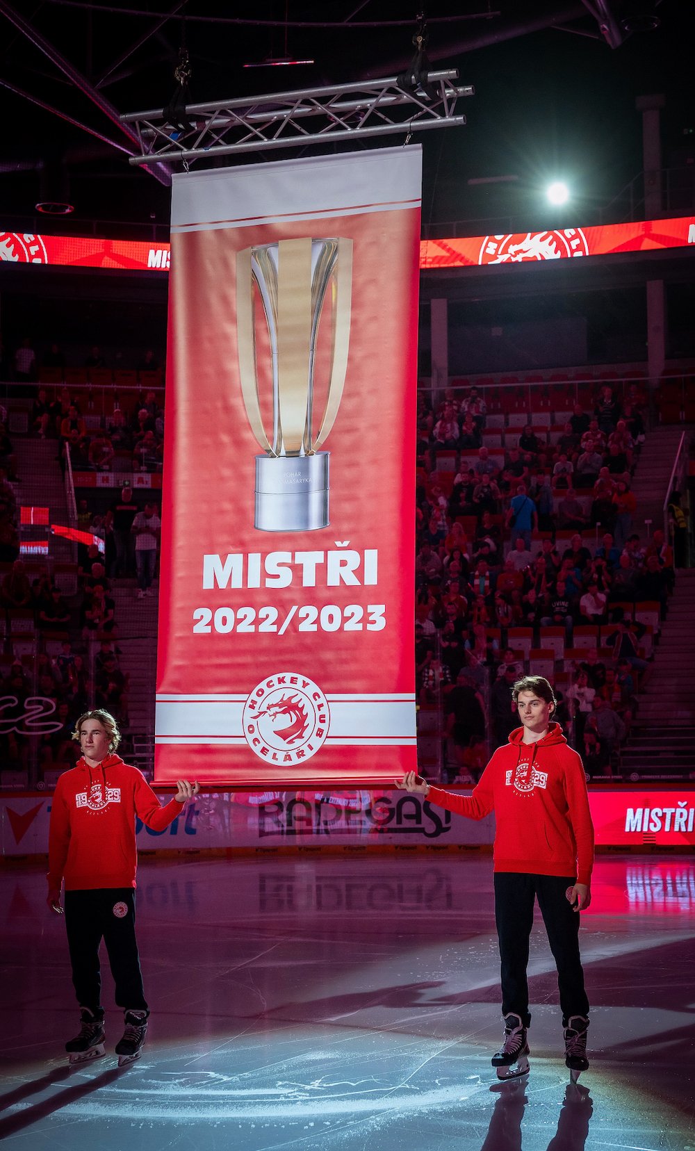 Po úvodním slavnostním ceremoniálu, kdy pod strop WERK ARENY zamířila vlajka symbolizující pátý mistrovský titul v klubové historii, se na ledě začaly dít věci. Z utkání uplynulo jen dvacet vteřin a Oceláři se poprvé radovali. Na brankovišti důrazného Martina Růžičku sice Kovář nejprve dvakrát vychytal, po Voženílkově přiklepnutí už nejproduktivnější Ocelář historie pošťouchl kotouč do sítě a zapsal třístou branku v červenobílých barvách.