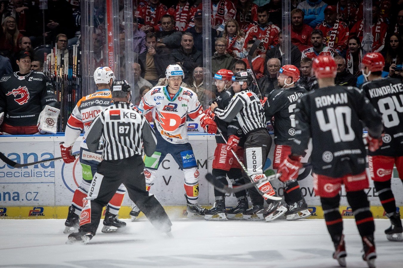 Rozlet Ocelářů pak zbrzdil další Pánikův faul. Domácí potočili Třinecké na kolotoči, ale nakonec svou standardní situaci nevyužili a skóre tak bylo i sedm minut před třetí sirénou nerozhodné. V závěru byli aktivnější domácí, kterým se podařilo několikrát zamknout Slezany před jejich brankou. Šedesát sekund před koncem pak byl v obrovské šanci Říčka, který ale nedotáhl svou kličku do strany Kacetlovi. Zápas tak dospěl k rozuzlení v nastavení. V prodloužení měl nejprve obrovskou šanci Roman, za rozhozeného Willa ještě dorážel Hrehorčák. Domácí se se štěstím těmto příležitostem ubránili a emocemi nabitý zápas nakonec v předposlední nastavené minutě rozstřihl Patrik Poulíček. Konečný stav utkání – Dynamo 4, Oceláři 3!