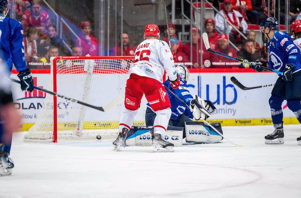 Úvodní třetina začala v opatrném duchu, WERK ARENA musela na první větší šanci čekat do sedmé minuty. Málem z toho hned byla branka, pohotový Draveckého pokus z pravého kruhu ale zamířil jen do tyče Hlavajovy klece. Neujala se ani Kurovského dorážka. V polovině prvního dějství poprvé vážněji zahrozili hosté, střela Jakuba Lva z levé strany vyděsila Mazance, třinecký gólman ale dokázal zakročit ramenem.