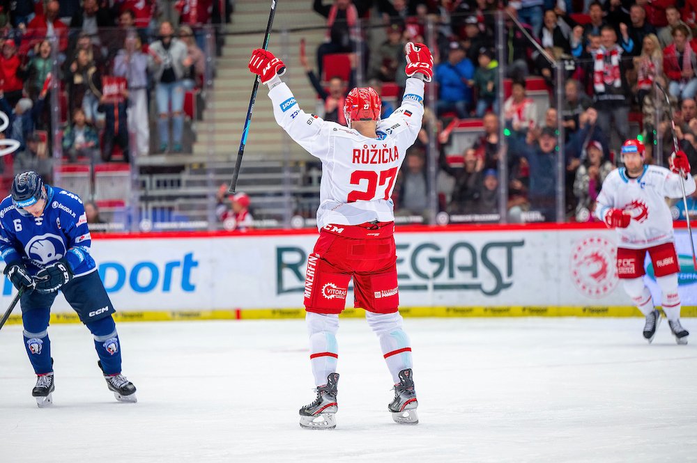 Škodovka mohla na dvě trefy Ocelářů odpovědět při své početní výhodě po faulu Romana, hosté se ale do větší šance nepropracovali. Udeřili tak znovu domácí. V rychlém brejku tří proti dvěma Adámek nabil Richardu Pánikovi, který z pravého kruhu z voleje poslal kotouč do horního růžku hostující branky.