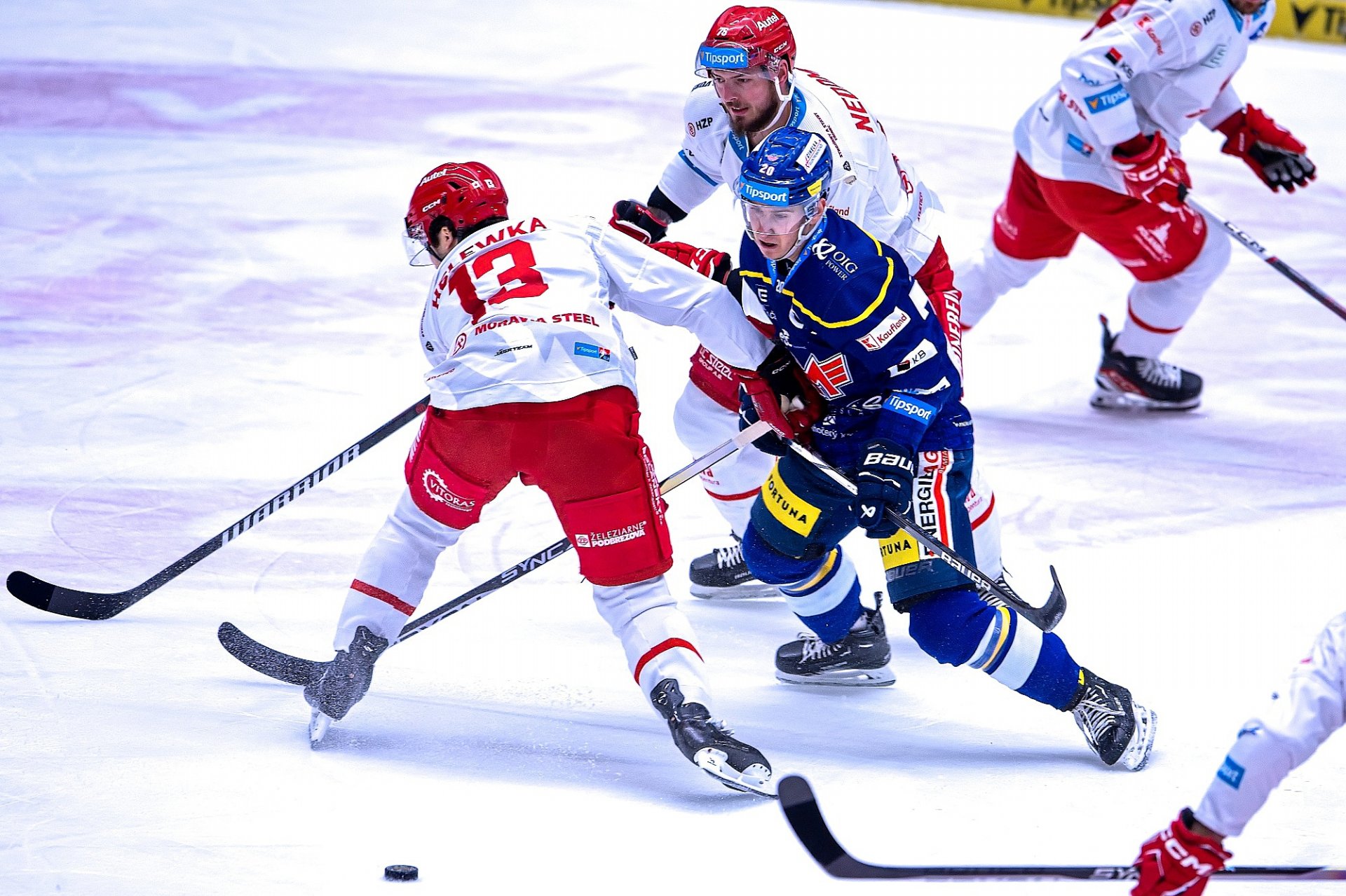 Do poslední periody naskočili Oceláři bez Martina Růžičky, trenéři Moták s Országhem tak protáčeli pravá křídla jednotlivých formací. Hned po minutě mohl Slezany na dostřel přiblížit Daňo, ten ale z bezprostřední blízkosti trefil pouze Hrachovinův beton. Následný tlak hostí byl otupen vyloučením Voženílka, který sekáním zastavil rodící se přečíslení Motoru, Oceláři oslabení přečkali bez větších obtíží.
