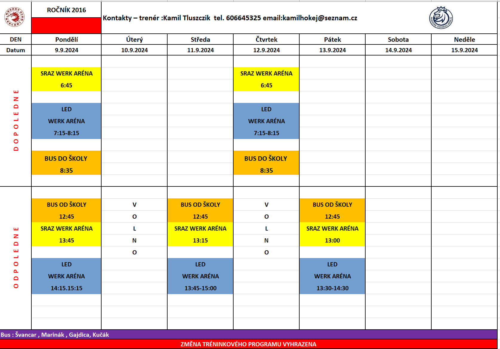 Týdenní plán - 9.9. - 15.9. 2024
