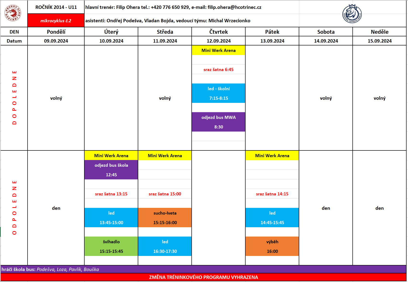 Týdenní plán - 9.9. - 15.9.2024